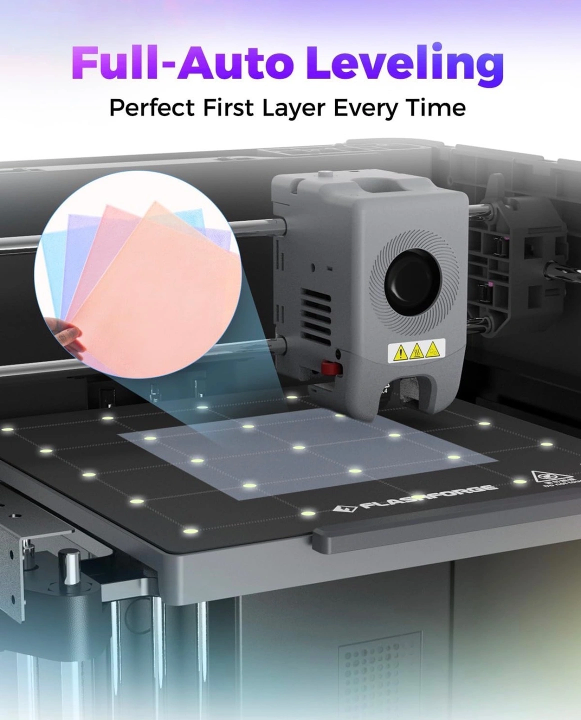 1-Click Auto Leveling & Perfect First Layer – The full-auto bed leveling system ensures a flawlessly calibrated print surface every time, eliminating manual adjustments and guaranteeing smooth, warp-free prints.
