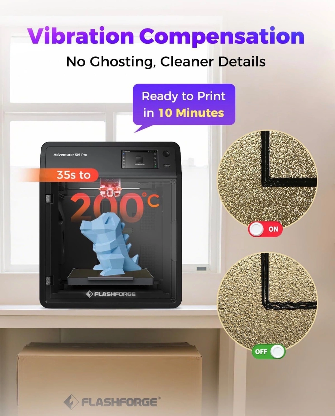 Quick Heating & Vibration Compensation – The 50W high-power nozzle heats to 200°C in just 35 seconds, while vibration compensation reduces ghosting for crisp, detailed models.