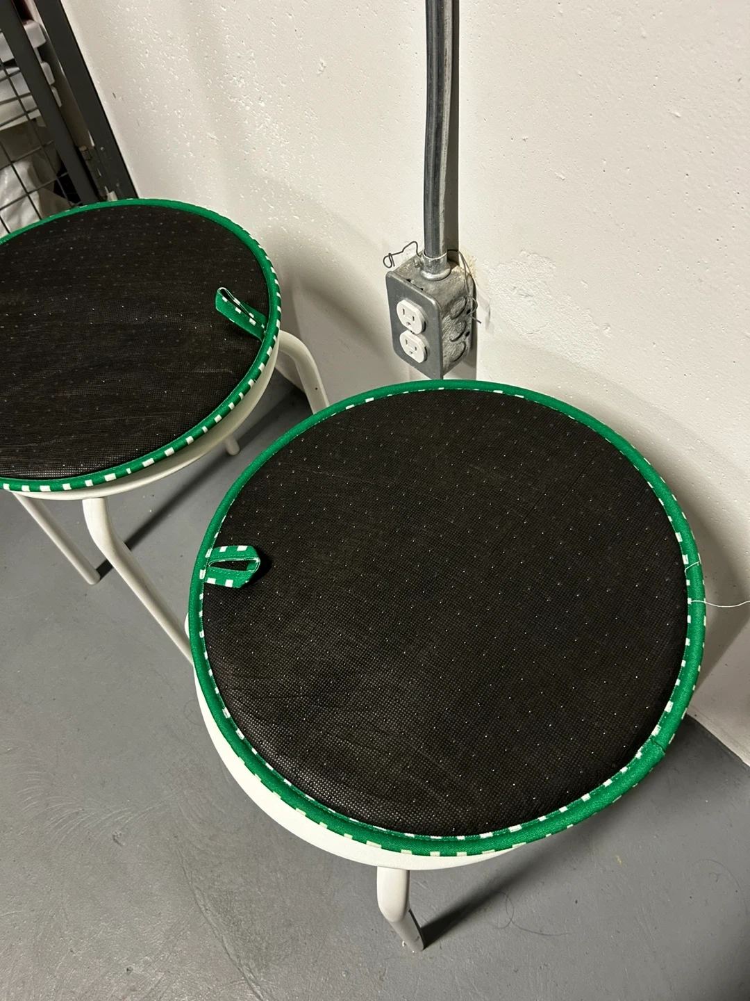 Selling a set of two IKEA Marius stools! They are white, and I've also got two green seat cushions that fit perfectly on top if you want them. Great for extra seating or a small space