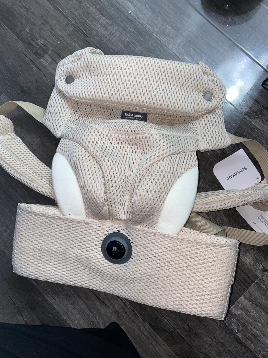 Selling a Bébamour baby carrier in beige! It's new and ready for a new little one. This carrier is designed for baby's comfort and safety. A great way to keep your baby close while keeping your hands free!