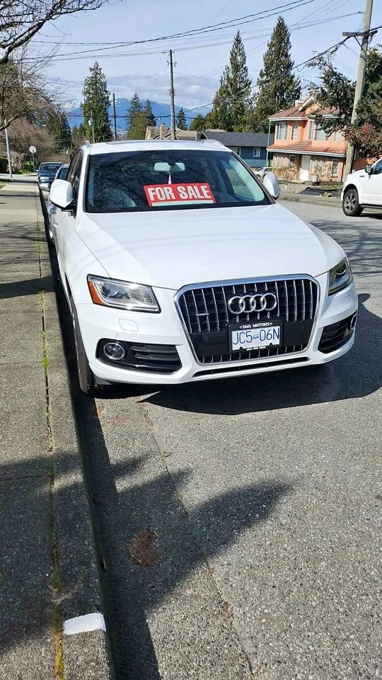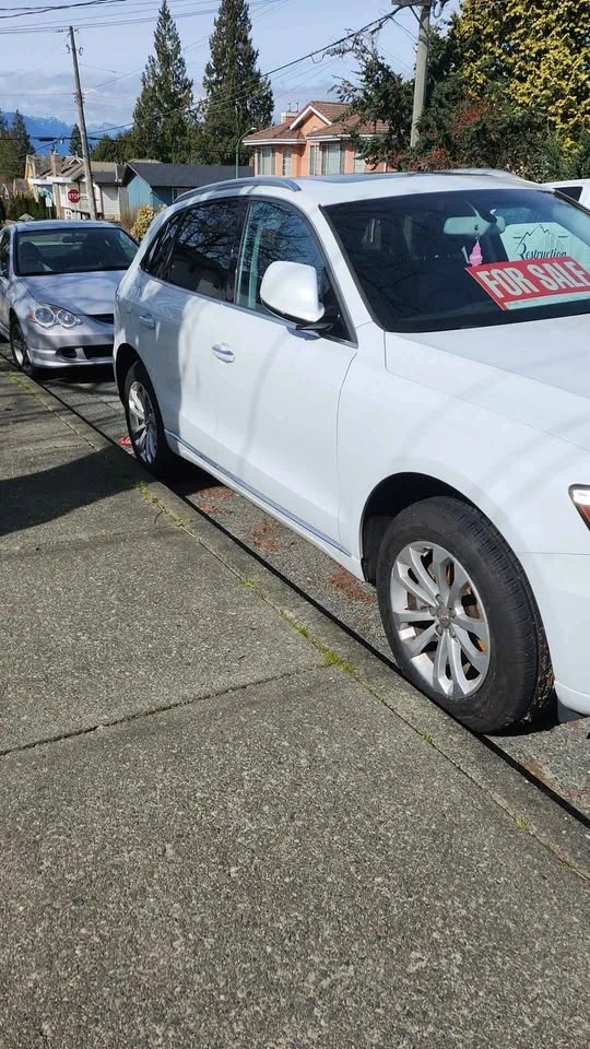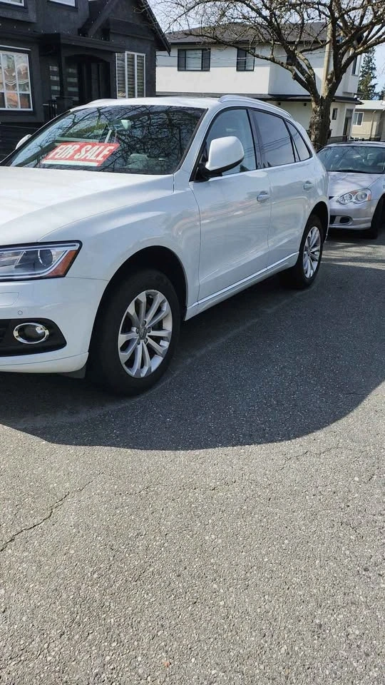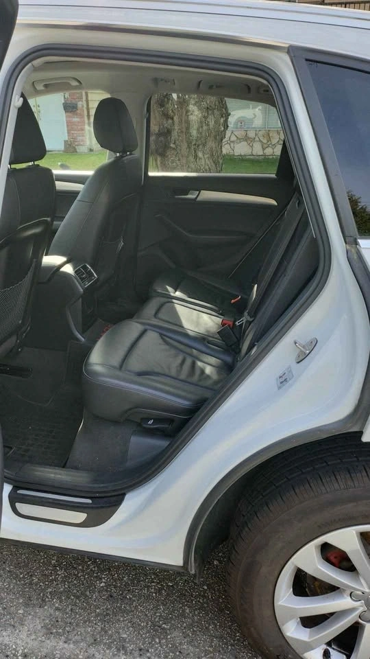 Newly serviced white 2016 Audi Q5 with turbo. Black interior, white exterior. Two owners, new brakes, and one-year-old mud and snow tires. 137,000 km. Drives great with no mechanical issues, as everything was just serviced. Features a panorama sunroof and sport mode. My name is Theresa. Open to reasonable offers or trades. Serious inquiries please. Need gone ASAP. Can show the vehicle anytime.