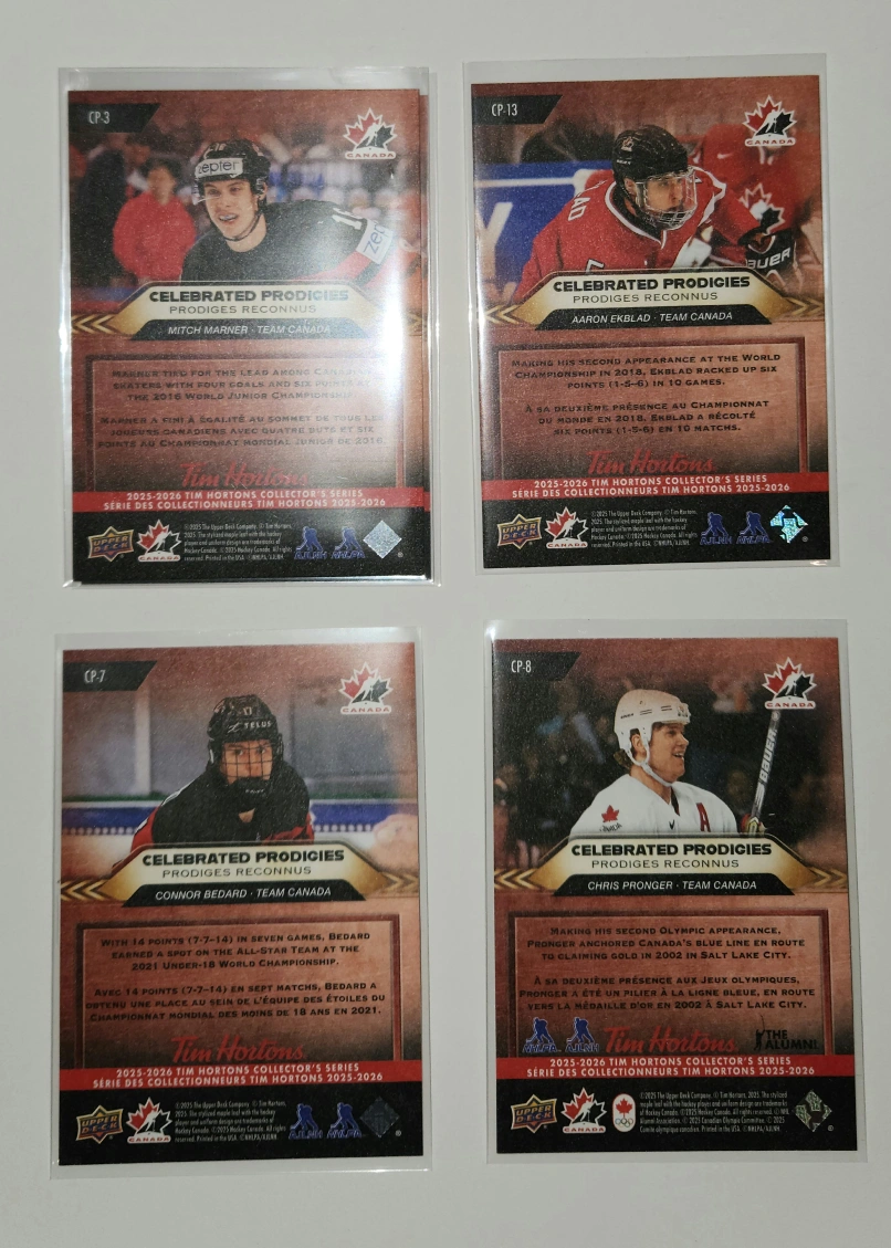 Tim Hortons collector's series hockey cards Team Canada 2026 Olympics. Mint in penny sleeves. Take all for $22