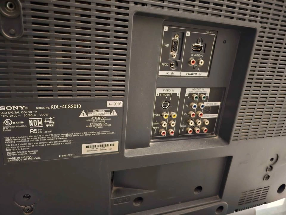 Sony Bravia 40-inch LCD Digital Color TV in good working condition. Clear picture and reliable Sony quality. Screen size: 40 inches. Model: KDL-40S2010. Resolution: HD (not Smart TV). Inputs: HDMI, AV, S-Video, PC input. Comes with original stand. Clean screen, normal signs of use for age. Perfect for bedroom, basement, or guest room. Works perfectly fine. No damage. Reason for selling: upgraded to a 65-inch TV. This is not a smart TV, but you can easily use a Fire Stick, Chromecast, or Roku with it. I also have a Fire Stick 4K available for an extra cost.