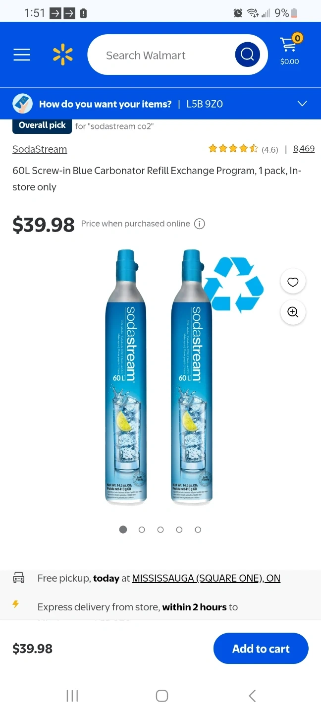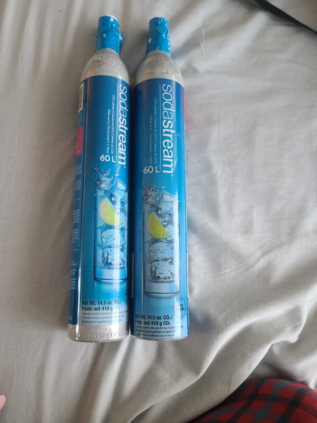 Two SodaStream 60L CO2 carbonator refill cylinders. Each cylinder contains 14.5 oz net weight (410 g) of CO2. These are screw-in type carbonators. They're for refilling your SodaStream machine. New and unused . I bought the wrong type and that is why i am selling it. Can buy one for 25 cad per item. one original price is 48 cad both together I am selling for 50 cad . Can also buy just one for 25 cad. New and unused