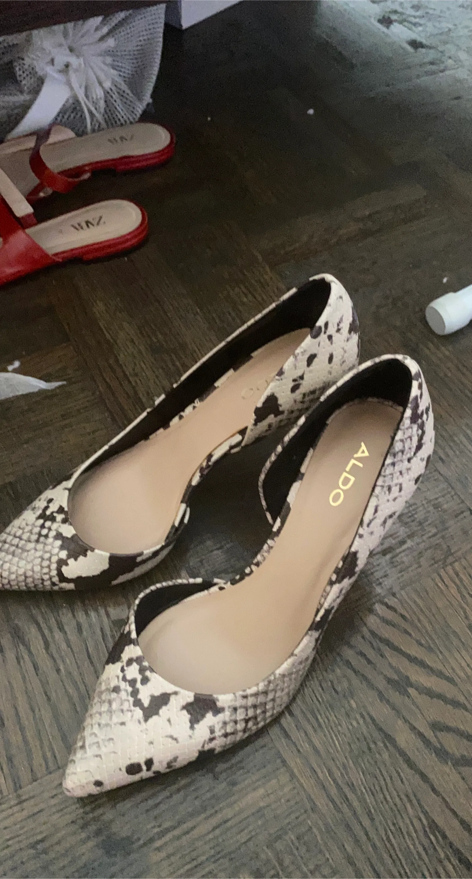 Stylish ALDO heels with a unique snakeskin print! These heels are perfect for adding a touch of elegance to any outfit. They're in great condition and ready for a new home