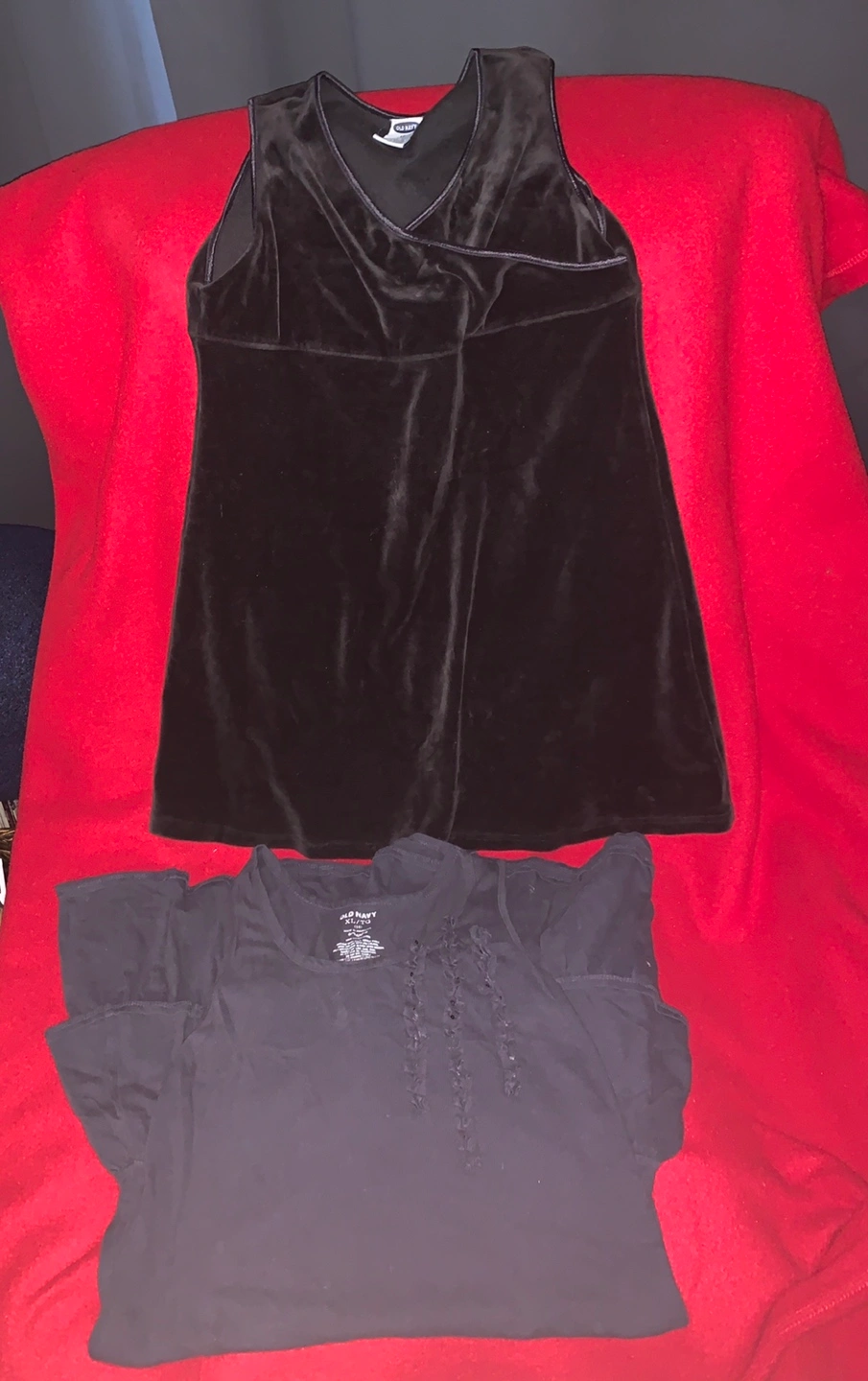 One is size 10 and the other is size 14. Both ing great condition. One is like velvet.