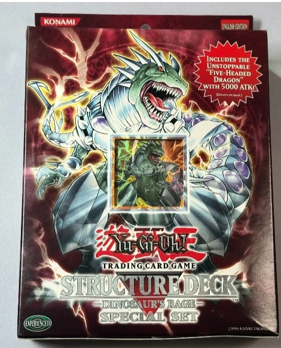 This is the Yu-Gi-Oh! Trading Card Game Structure Deck: Dinosaur's Rage Special Set. It's an English Edition from Konami. This set includes the "Unstoppable Five-Headed Dragon" with 5000 ATK. Sealed 1st Edition
