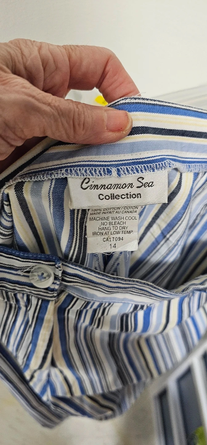 Buy & SellCinnamon Sea Collection Striped Capris Size 14Cinnamon Sea Collection Striped Capris Size 14$10These capris are from the Cinnamon Sea Collection. 100% Cotton. Machine wash cool, hang to dry.ConditionOkaySizeXLWHERE TO MEETBathurst-AdelideView MapSELLERverifiedbonooFashion District1000+214 reviews0 chats·0 favorites·1 viewsSEND CHAT TO SELLERHi bonoo! I’m interested in your listing.Hi bonoo! I’m interested in your listing.Get the Karrot app to chatSign In to chat