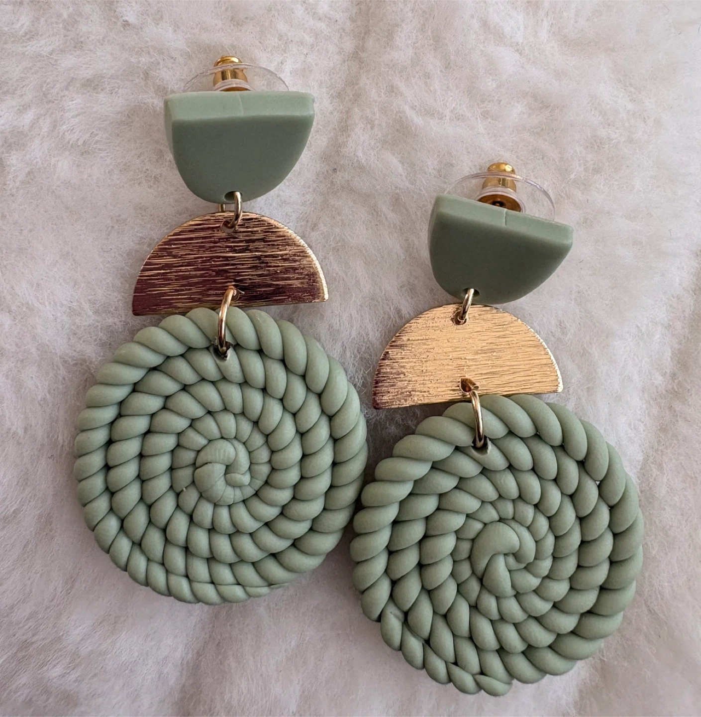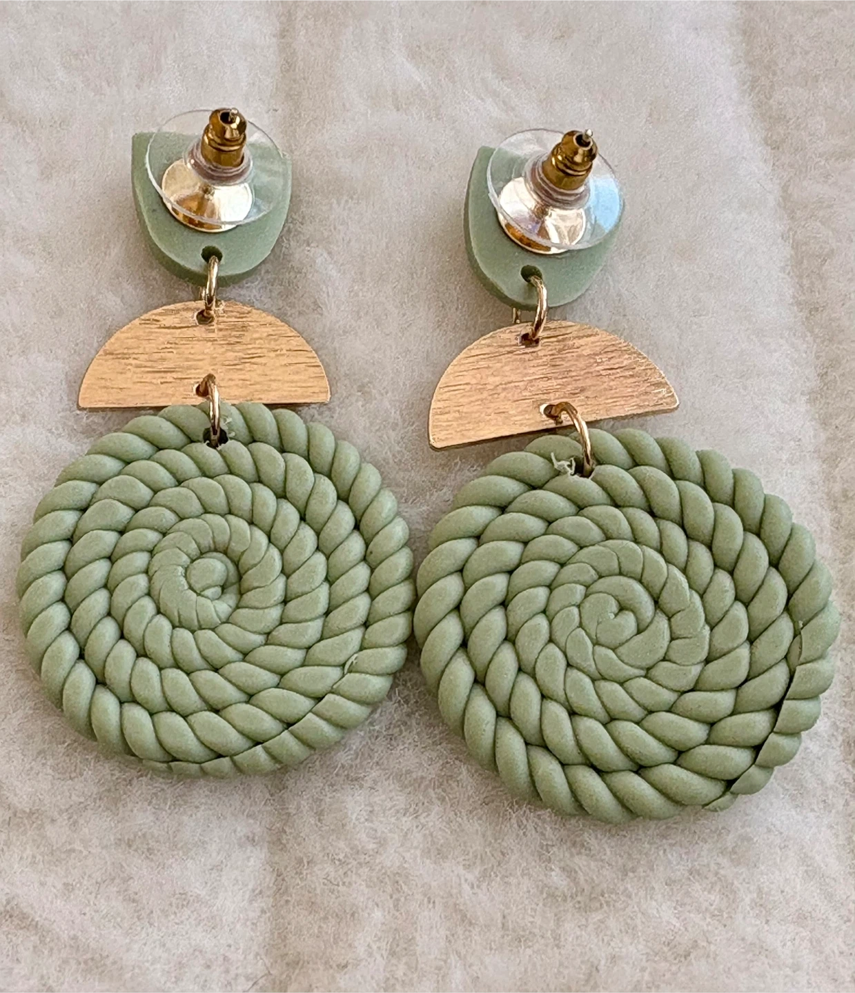 Sage Green Clay Twisted Earrings with Gold Accents