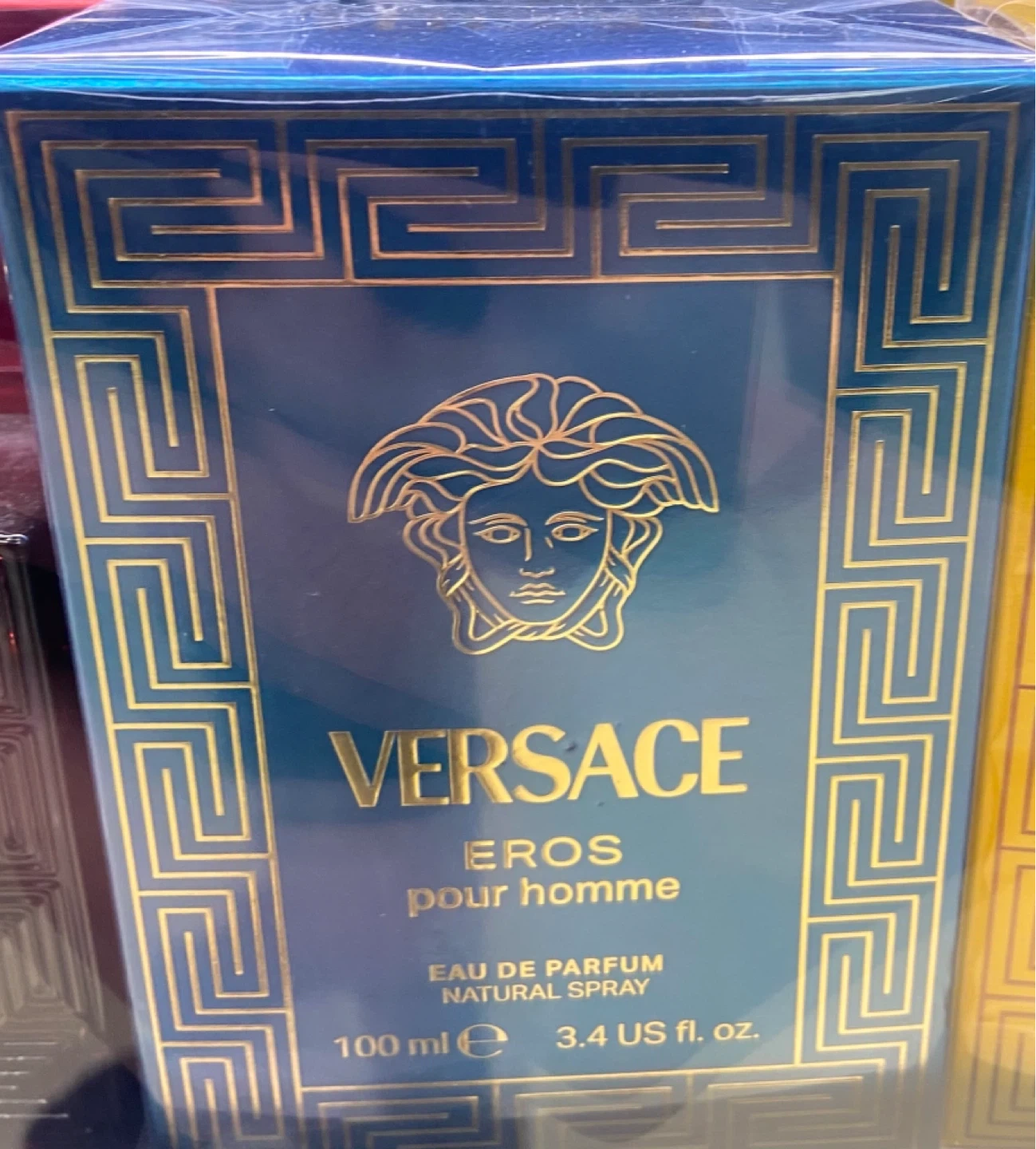 Versace Eros Pour Homme Eau de Parfum Natural Spray. It's a 100 ml bottle, equivalent to 3.4 US fl. oz. This fragrance is designed for men.
