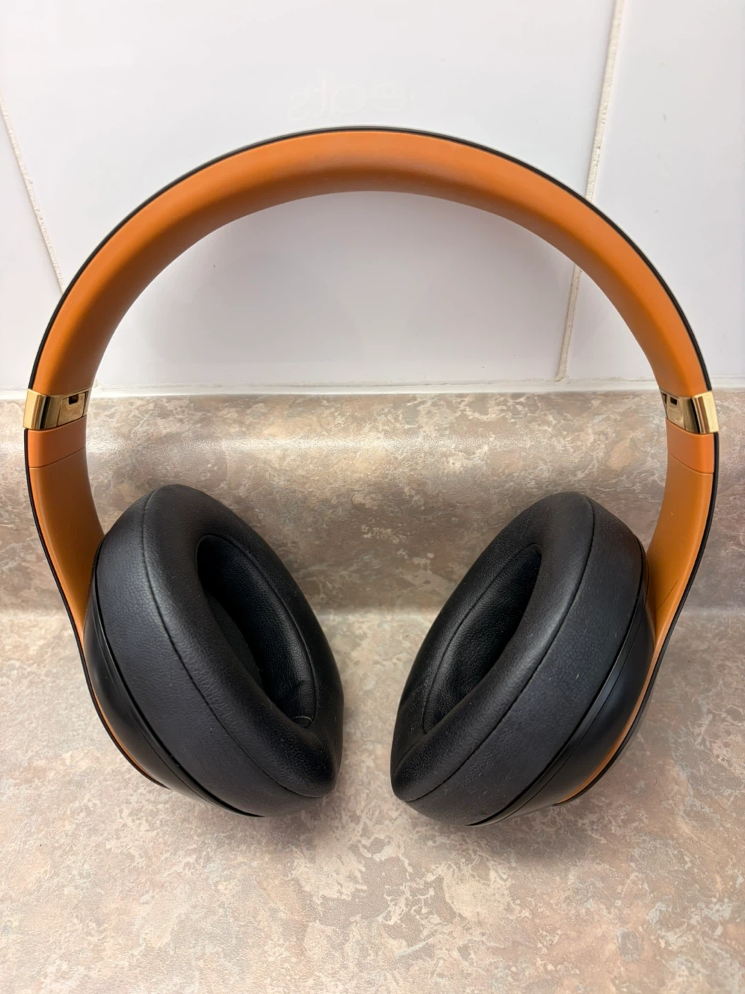 USED ONCE!! Beats Studio3 Wireless over-ear headphones in black with brown accents. Includes charging cable and carrying case.