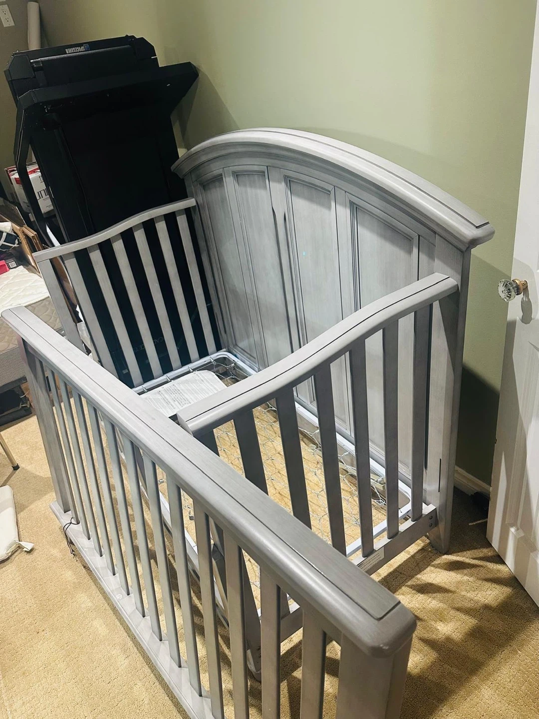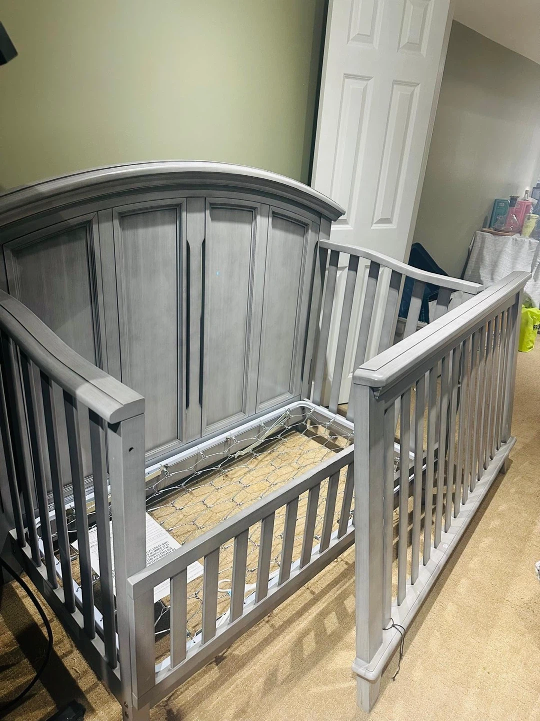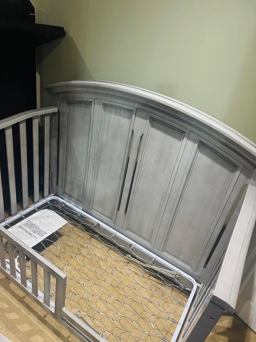 Brand New Solid grey 3 in one crib! Turns from a crib to a toddler bed, and then to a daybed! Comes with a brand new mattress! The crib is in great condition and ready for a new home. Perfect for your little one's nursery! https://www.westwoodbaby.com/jonesport-crib-cloud_jp-cr-3501nr-cld/