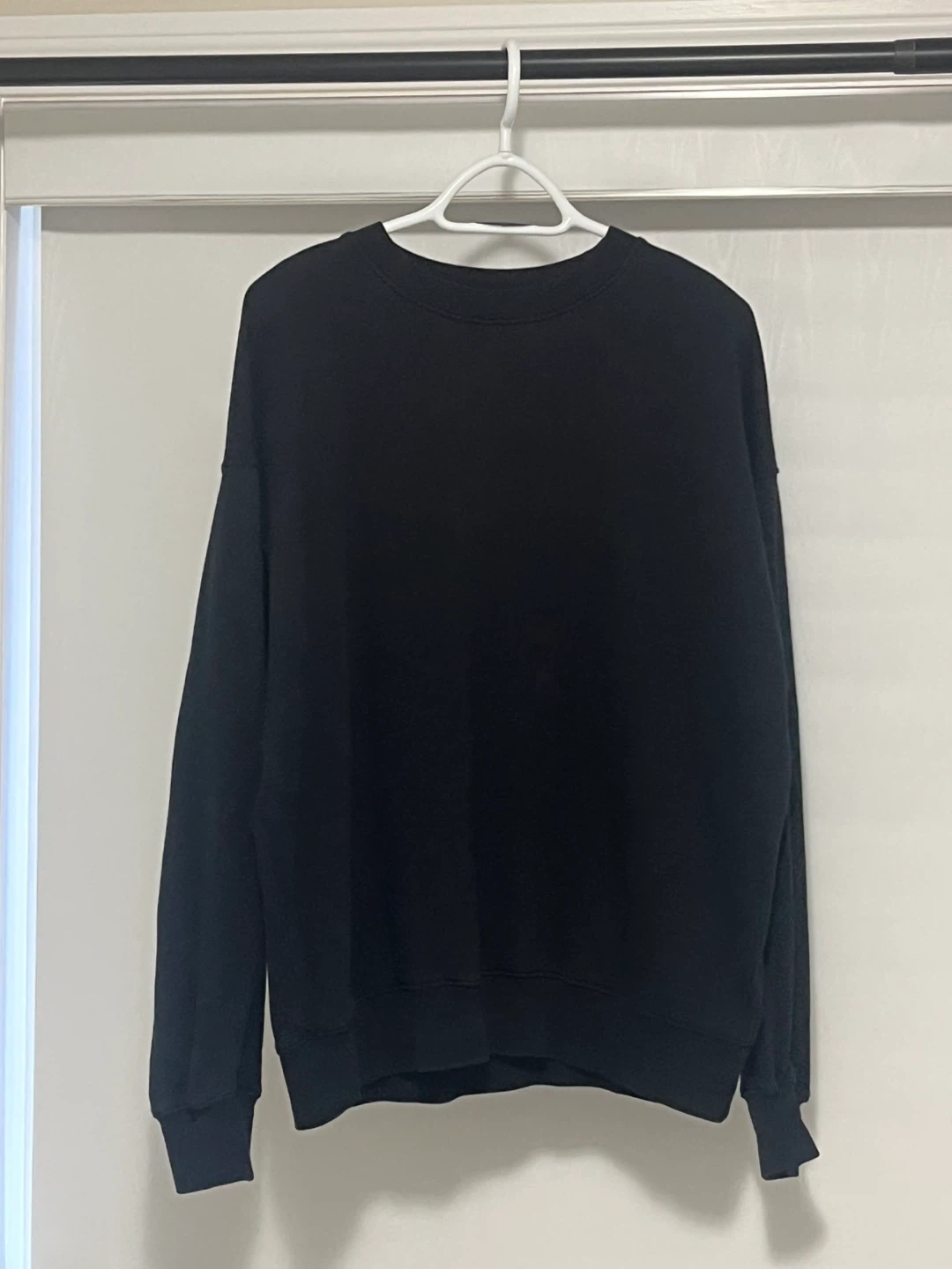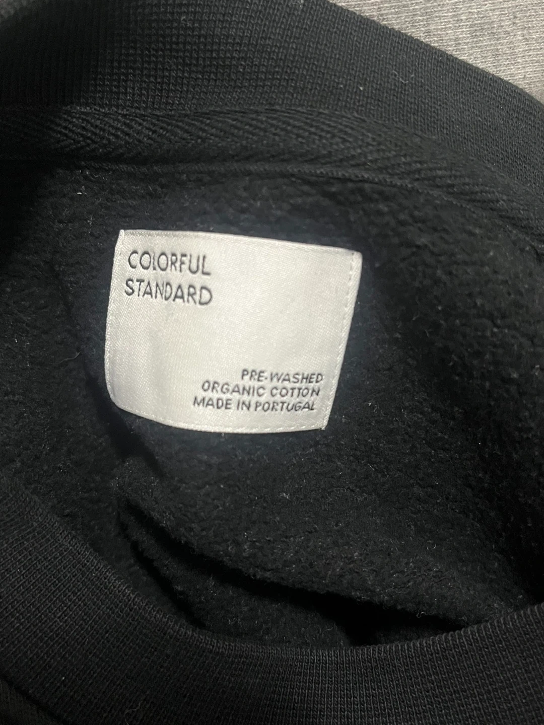A black pullover sweatshirt from Colorful Standard. It's made from pre-washed organic cotton and manufactured in Portugal. This crewneck is perfect for everyday wear.