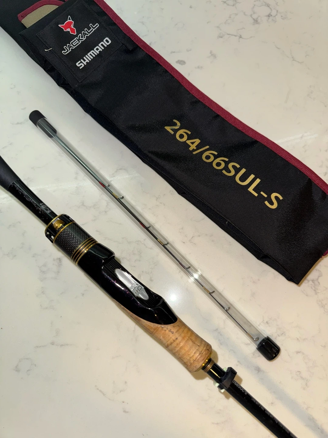 Selling a Shimano Jackall Poison Ultima 264/66SUL-S fishing rod! It features Hi-Power X Spiral X technology for enhanced performance. Comes with the original carrying case.