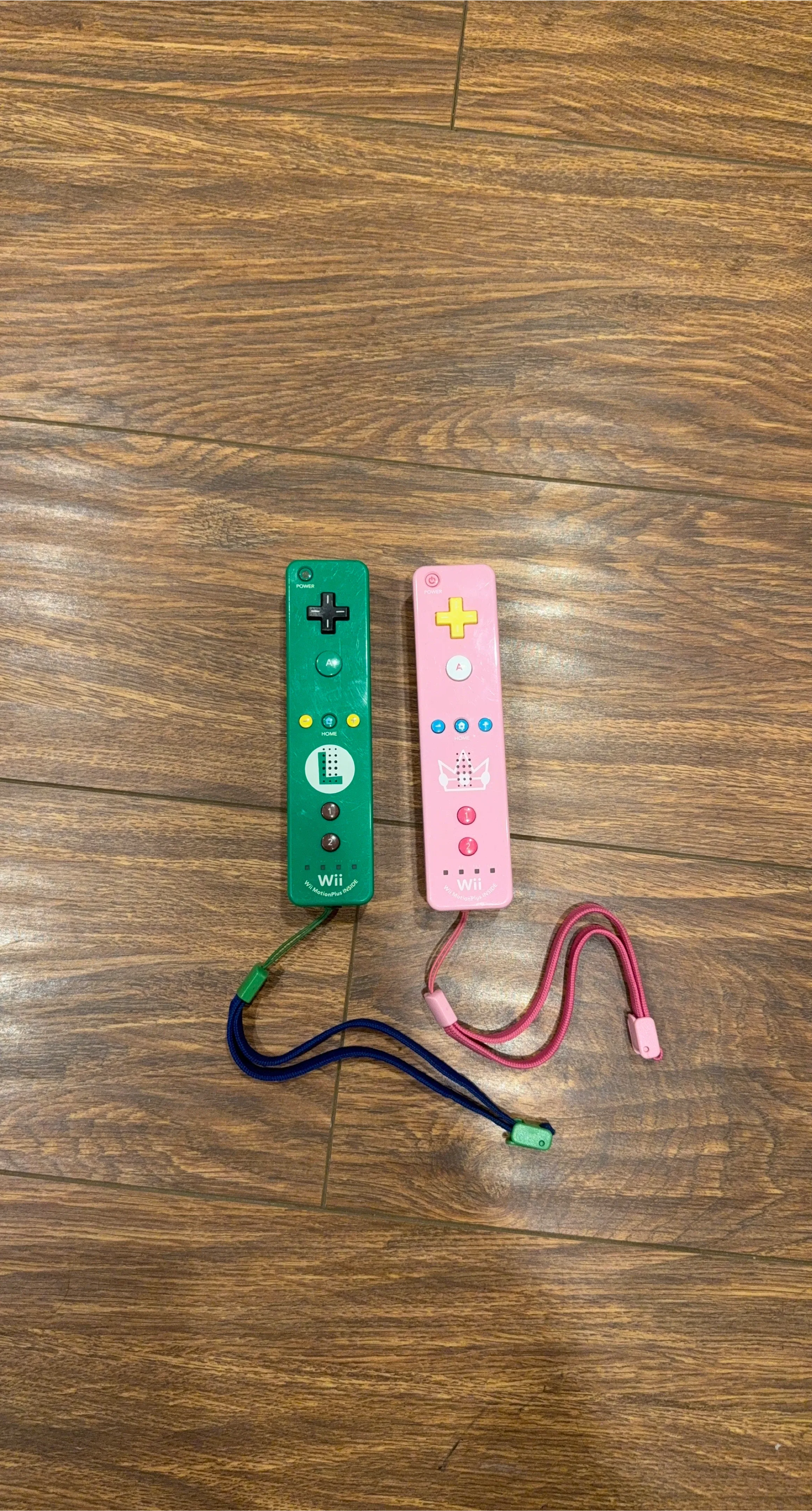 Selling two Nintendo Wii remote controllers! One is green and the other is pink. Both are in great condition and ready for some gaming fun