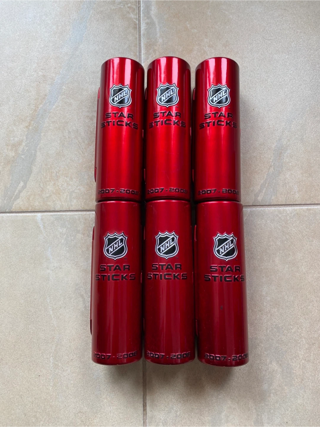 Up for grabs is a collection of 6 NHL Star Sticks, featuring iconic players from the 2007-2008 season. Each stick comes in its original packaging with player imagery. These are neat collectibles for any hockey fan!