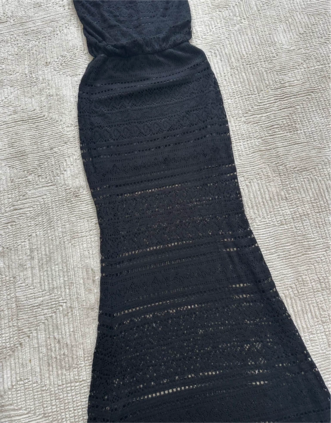 S-twelve Black Crochet Strapless Maxi Dress