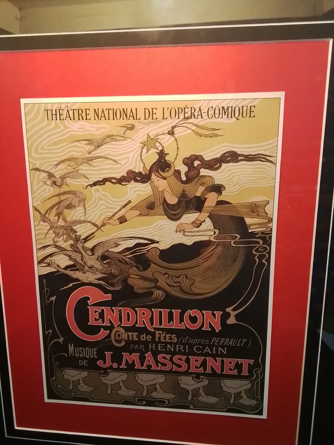 This framed Cendrillon Opera poster measures 18x21 inches and showcases the Théâtre National de l'Opéra-Comique's rendition of Cendrillon, featuring music by J. Massenet. The poster is in excellent condition, preserving the charm of the era. It's a lovely piece for collectors or anyone looking to add a touch of classical art to their space.