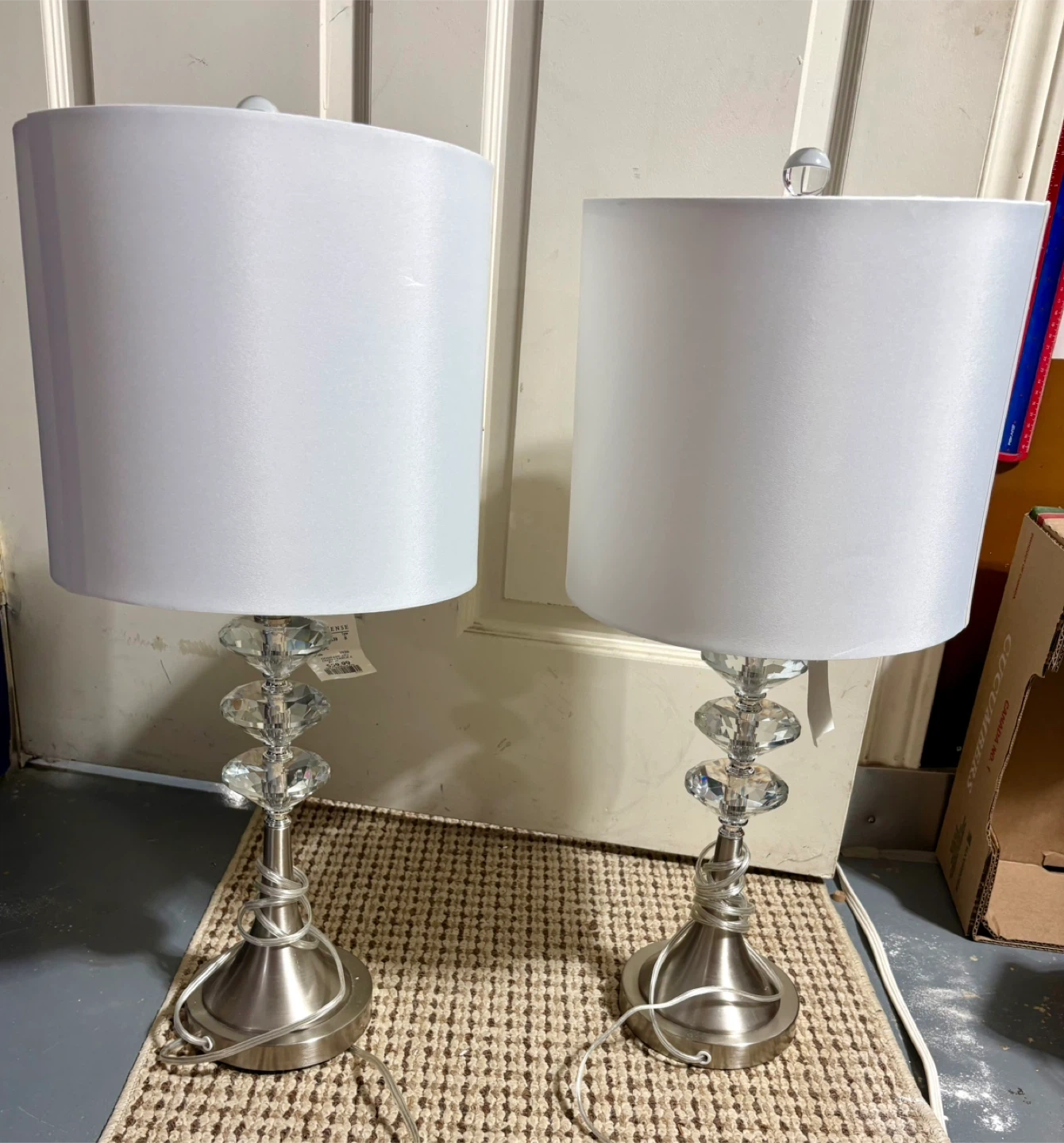 One shade has two black marks as shown in photo. Tags still on the lamps