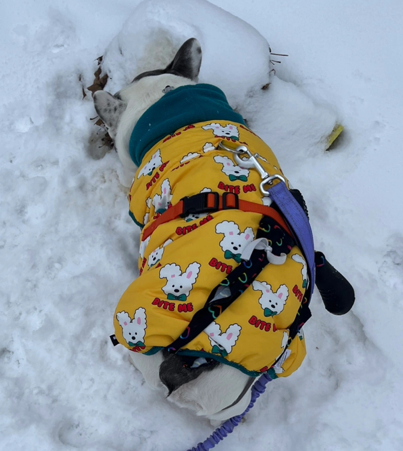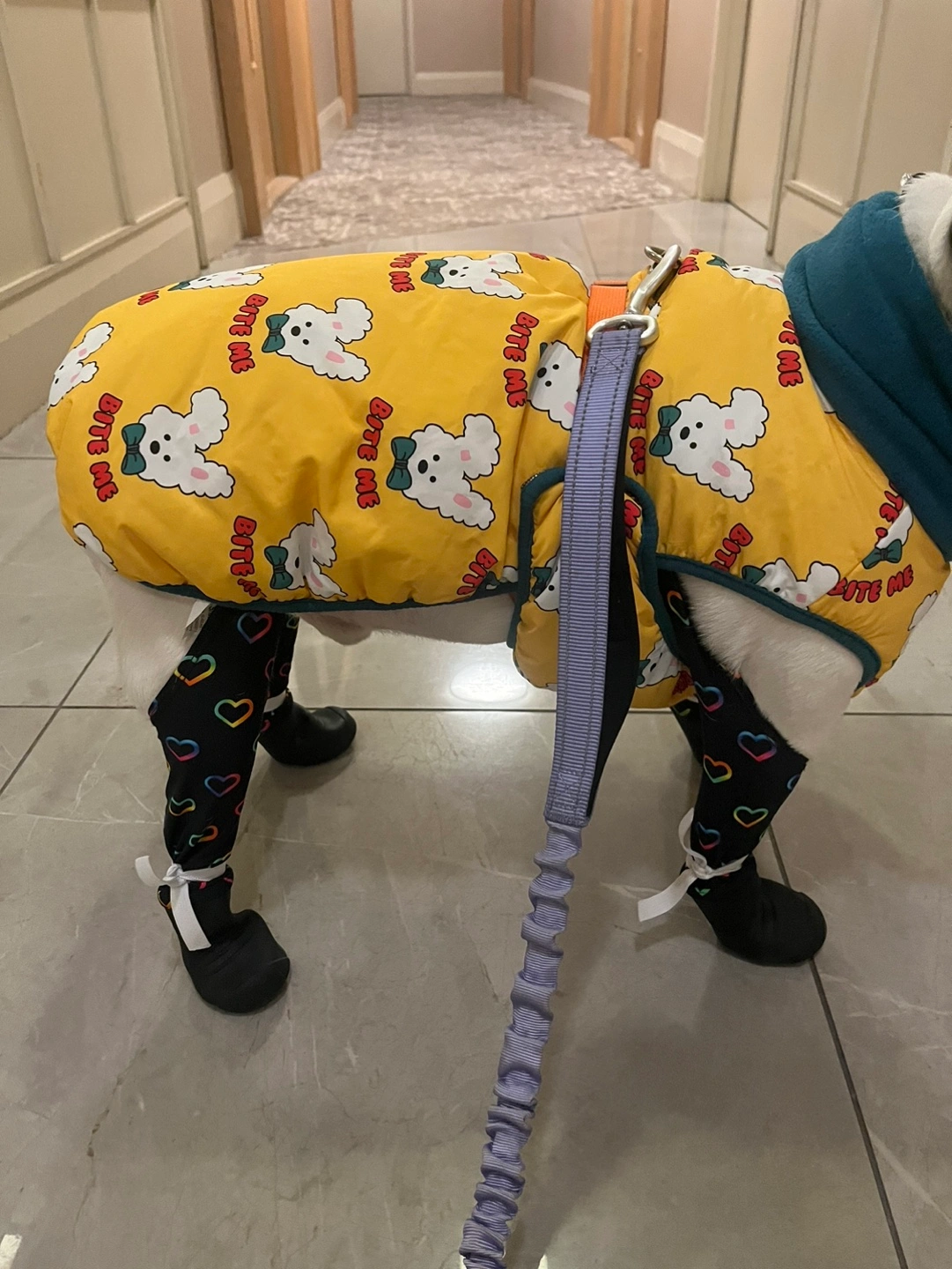 Bought these for my weird feet sized Frenchie, of course it wouldn’t stay on despite securing with extra strings on all 4 legs.