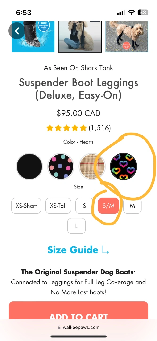 Walkee paws heart patterned boot legging, meant to stay on while walking (for most of dogs).