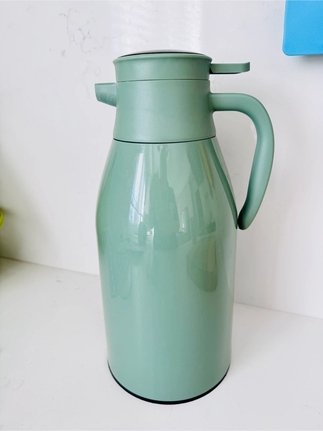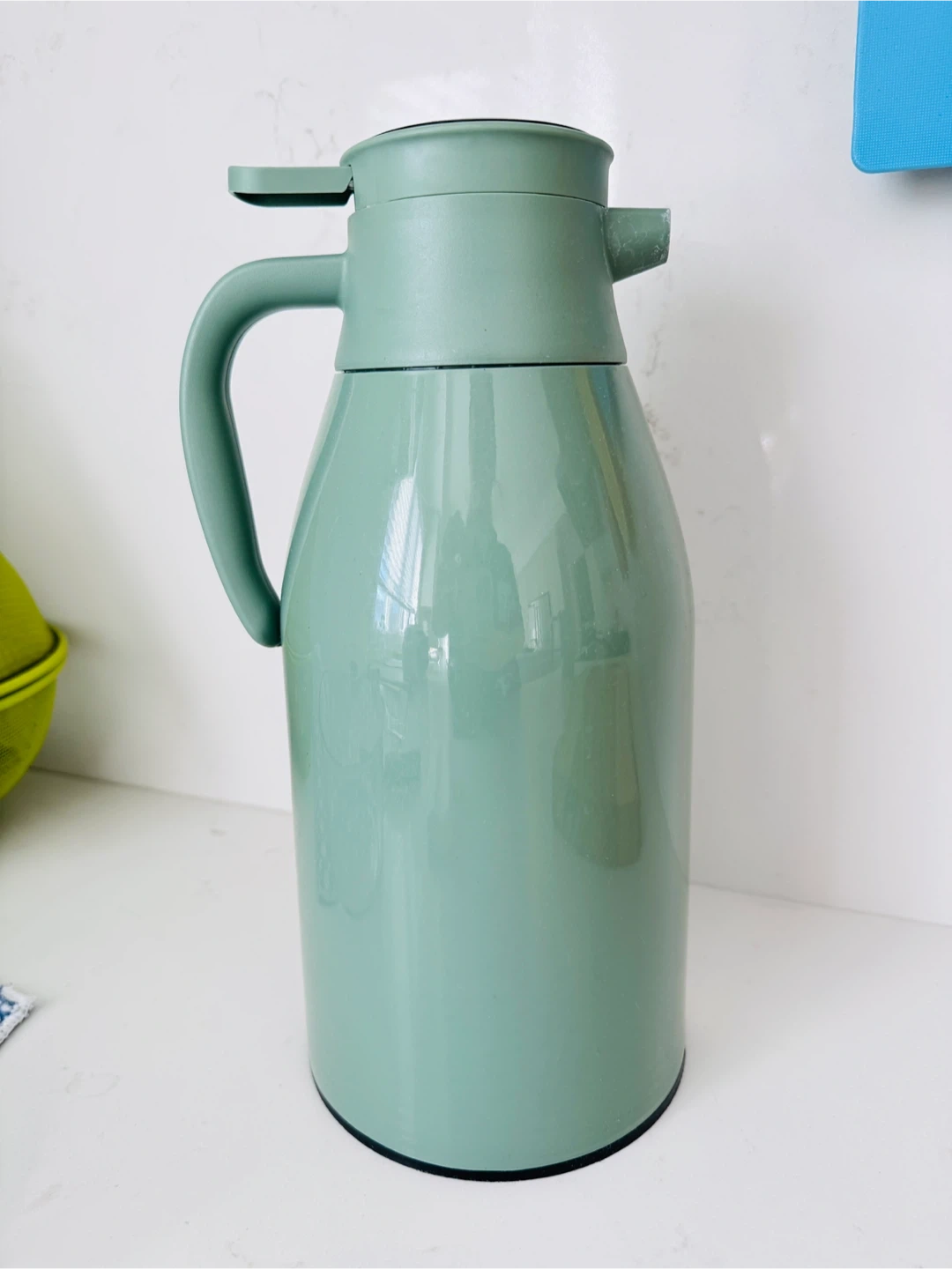 I'm selling a green thermos vacuum-insulated carafe. It's perfect for keeping your drinks hot or cold for hours. Great for serving coffee or tea!