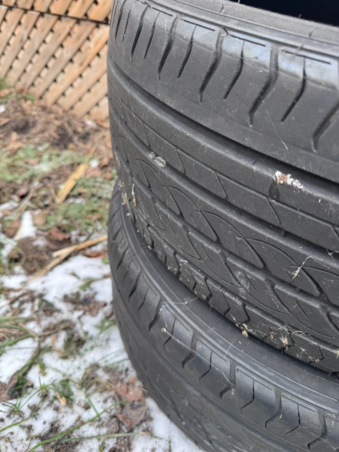 Assorted tired pairs and sets, two are 225/45ZR18 95W XL and two are 235/40R19 92H. All-season M+S tires. As is come have a look if you want any