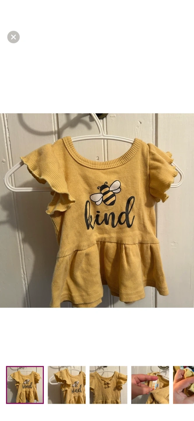 Monkey bars brand. Short ruffle sleeve peplum top. Yellow bee kind print. 100% cotton. Size 0/3m. Brand new condition