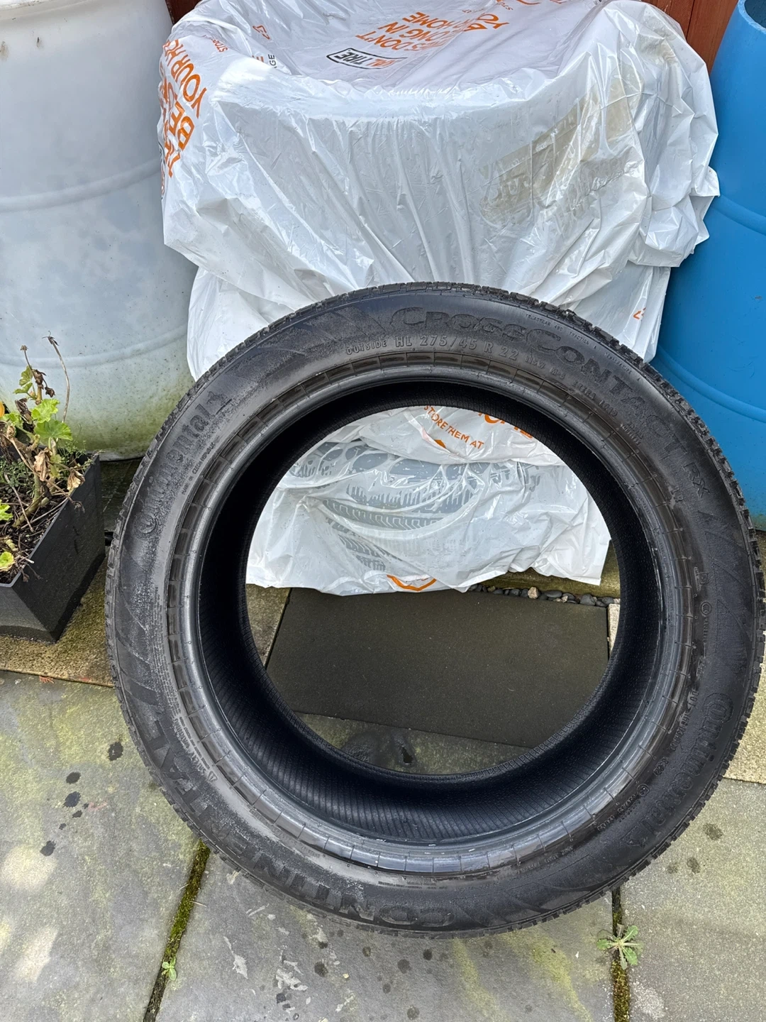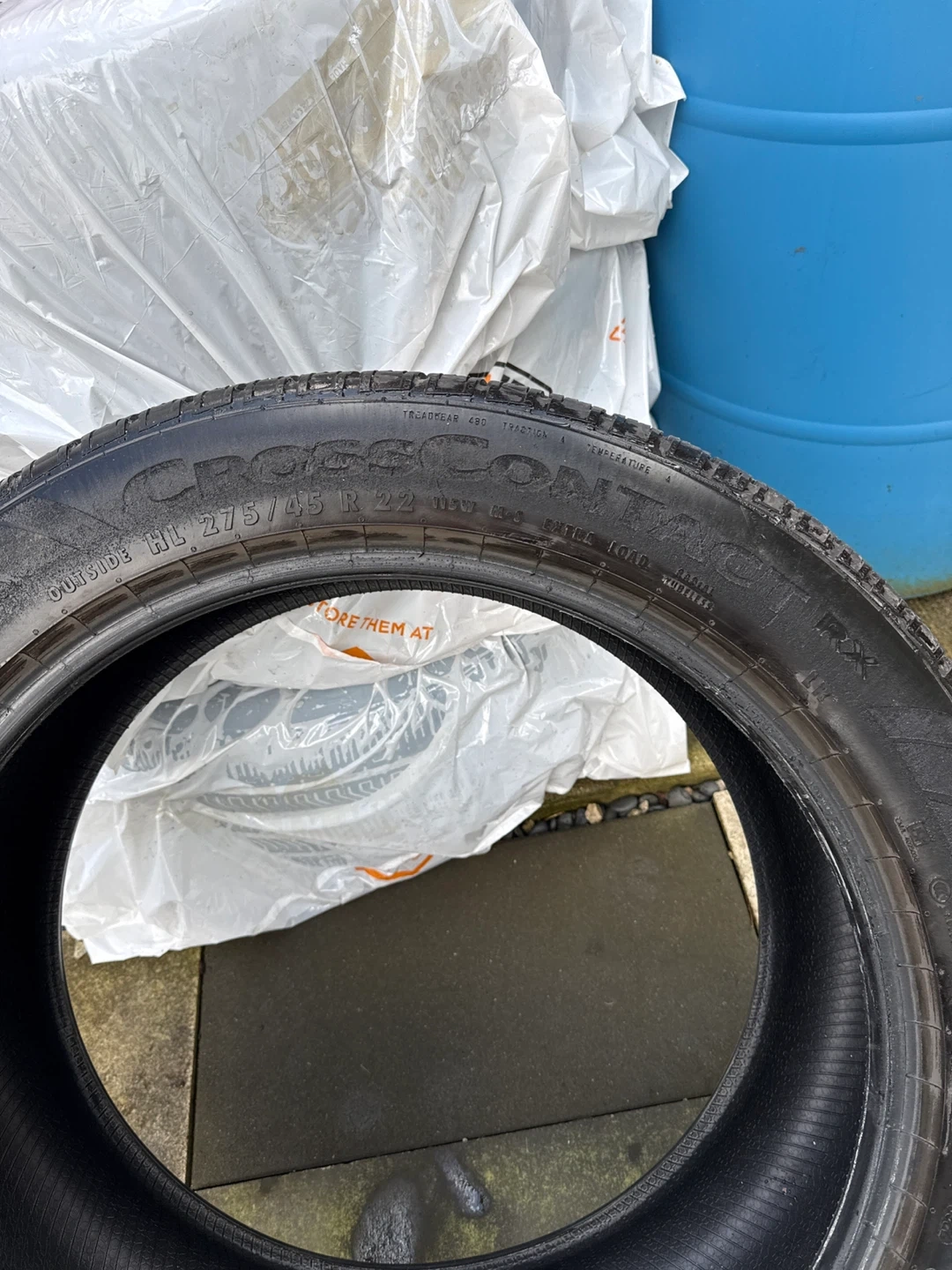 This is a set of 4 Continental CrossContact LX2 tires. The size is 275/45 R22 115H. It's suitable for all-season use.