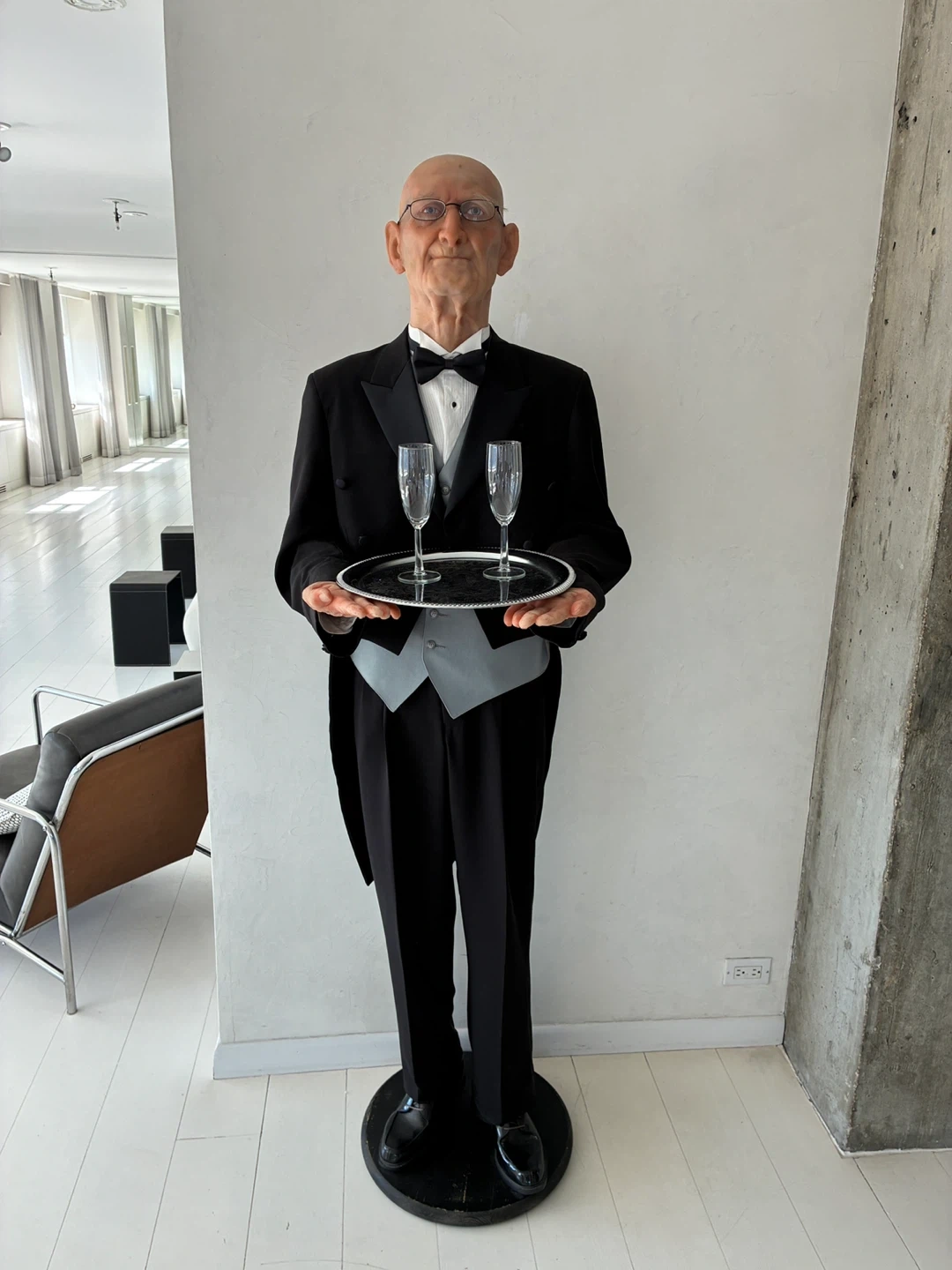 Life-Size Butler Mannequin with Serving Tray and Glasses