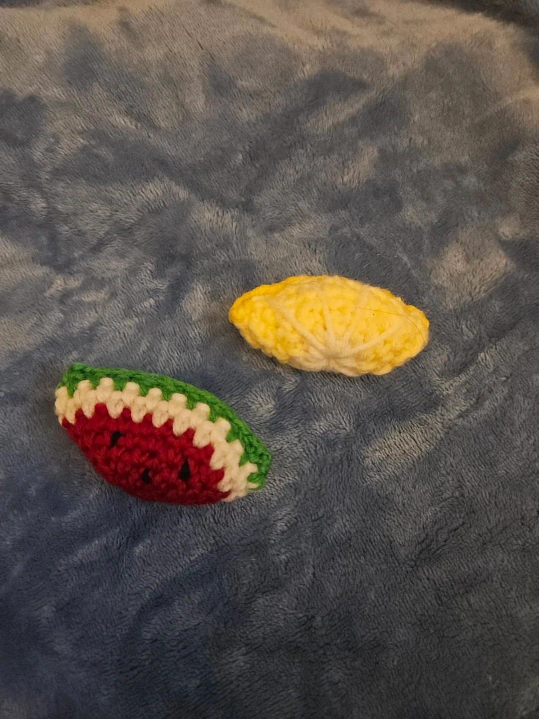*PRICE MIGHT VARY DEPENDING ON HOW BIG AND HOW MUCH TIME IT TOOK* Handmade crocheted items including a turtle, watermelon slice, lemon, a star-shaped bag, and moe. Made from yarn. Perfect for imaginative play or decoration!