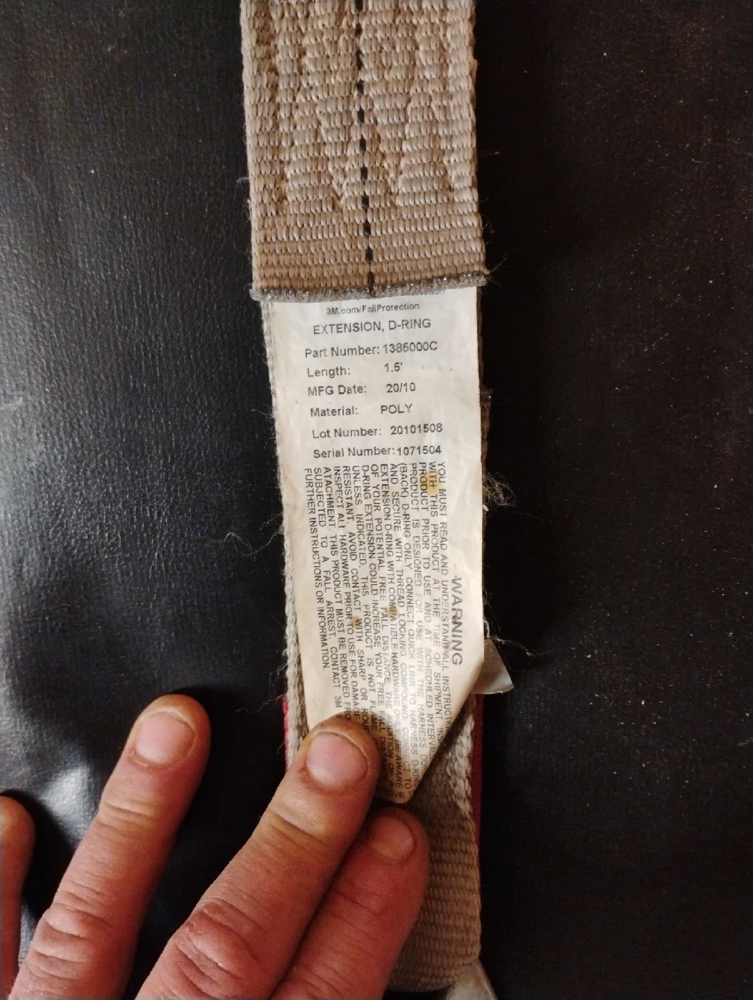 17Selling a 3M Fall Protection extension D-ring. It's 1.5' in length and made of POLY material. or commonly called a dog leash.
