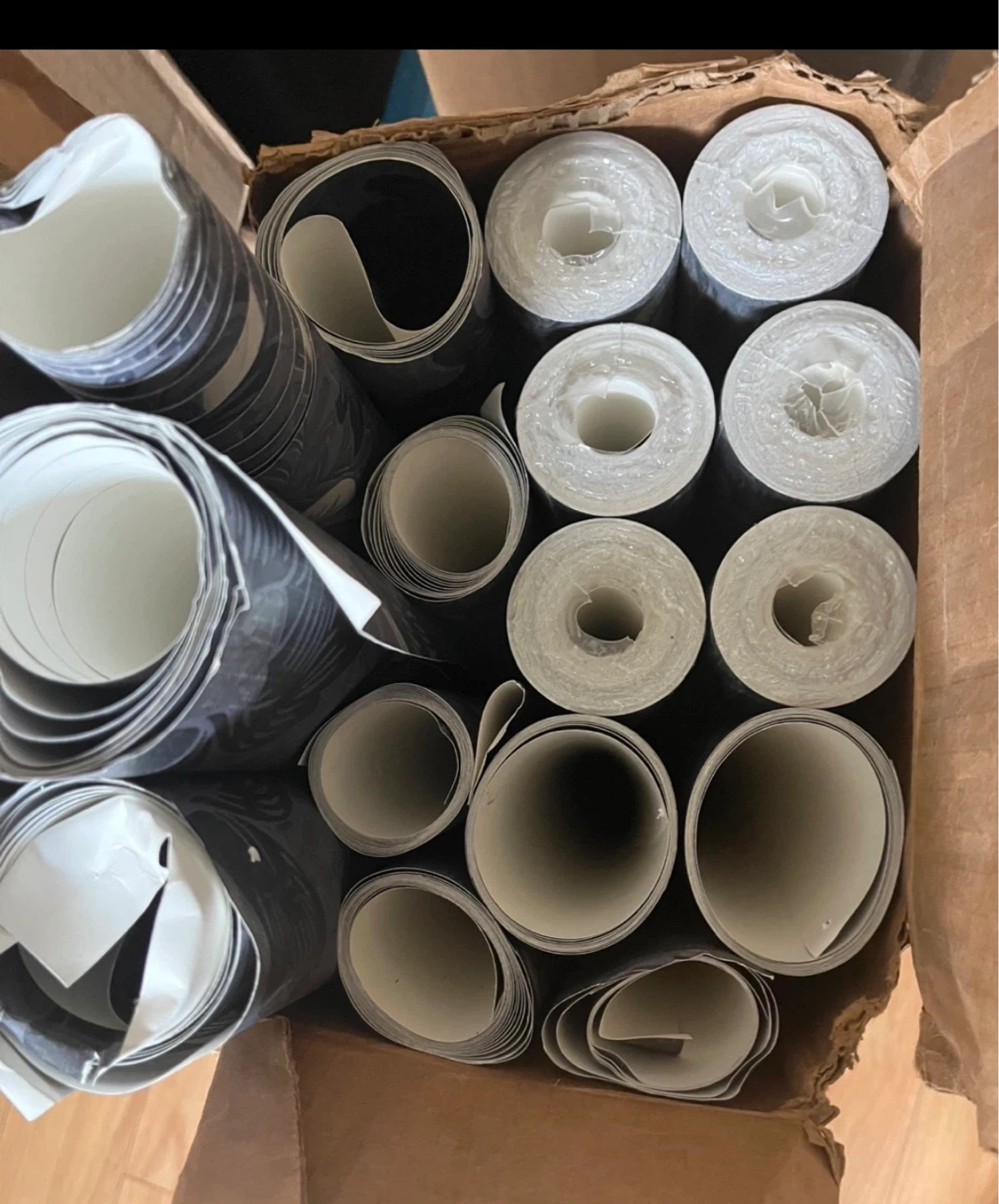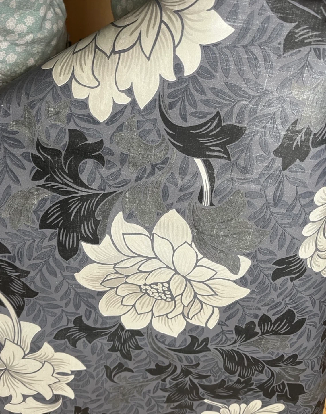 New, unused rolls of Mayflower wallpaper. Grey floral pattern. Washable and strippable. Each