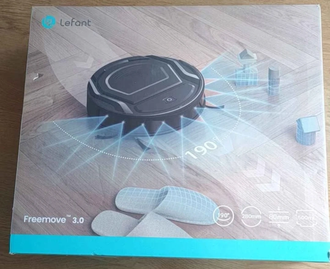 This is the Lefant Freemoove 3.0 robot vacuum. It has a 500ml dustbin capacity and a slim profile of 80mm, allowing it to clean under furniture. Control it easily with the app!