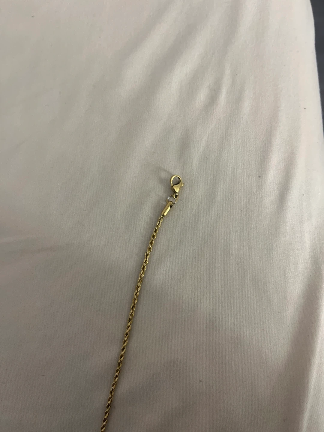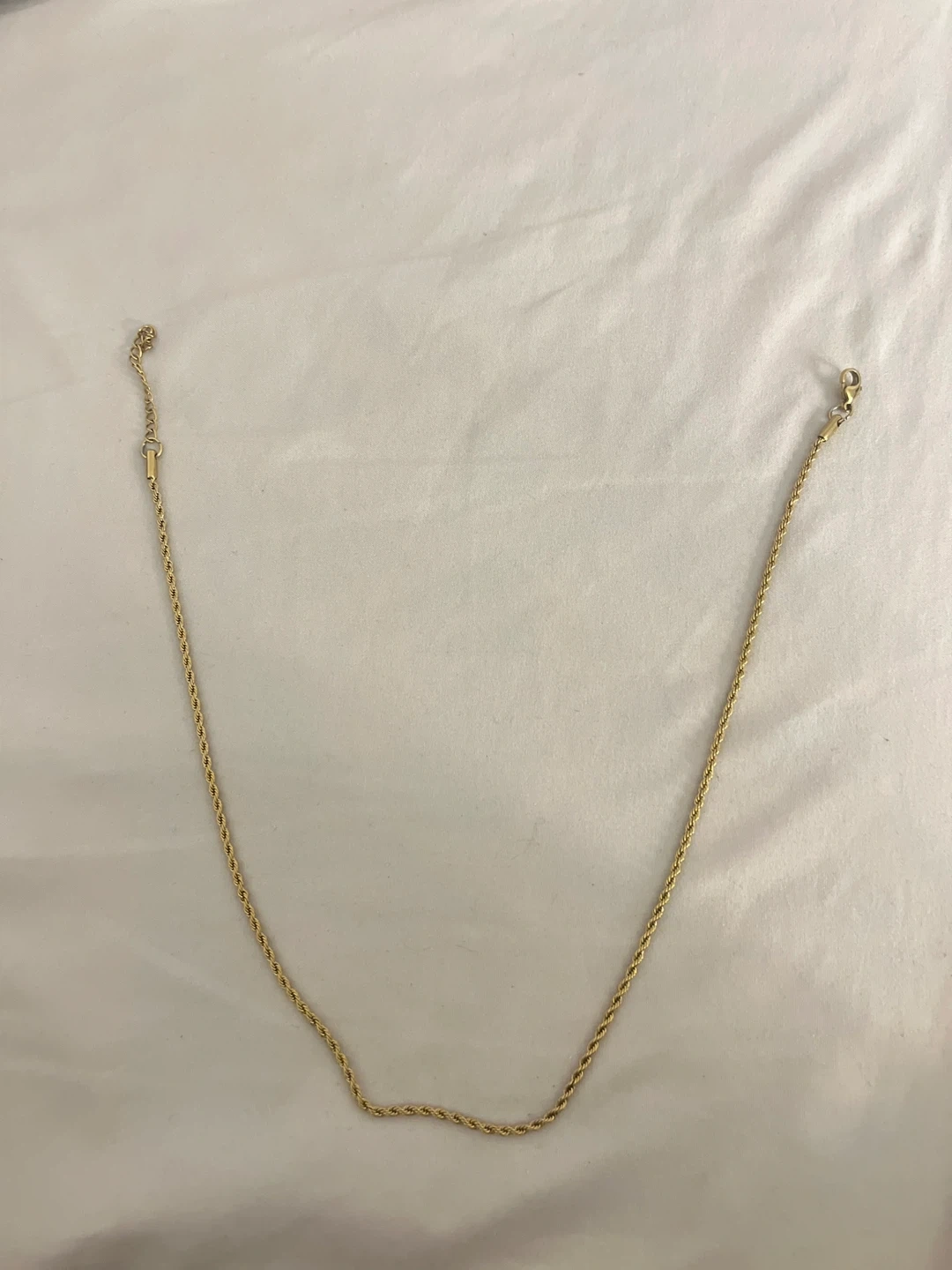 10Selling a gold rope chain necklace! It's in great condition and would be a lovely addition to any outfit. It’s real Gold it doesn’t rust or anything. I got this few days ago and i lost interest with it. Original Price was $139 but it’s 3 days old so im selling it for $105.