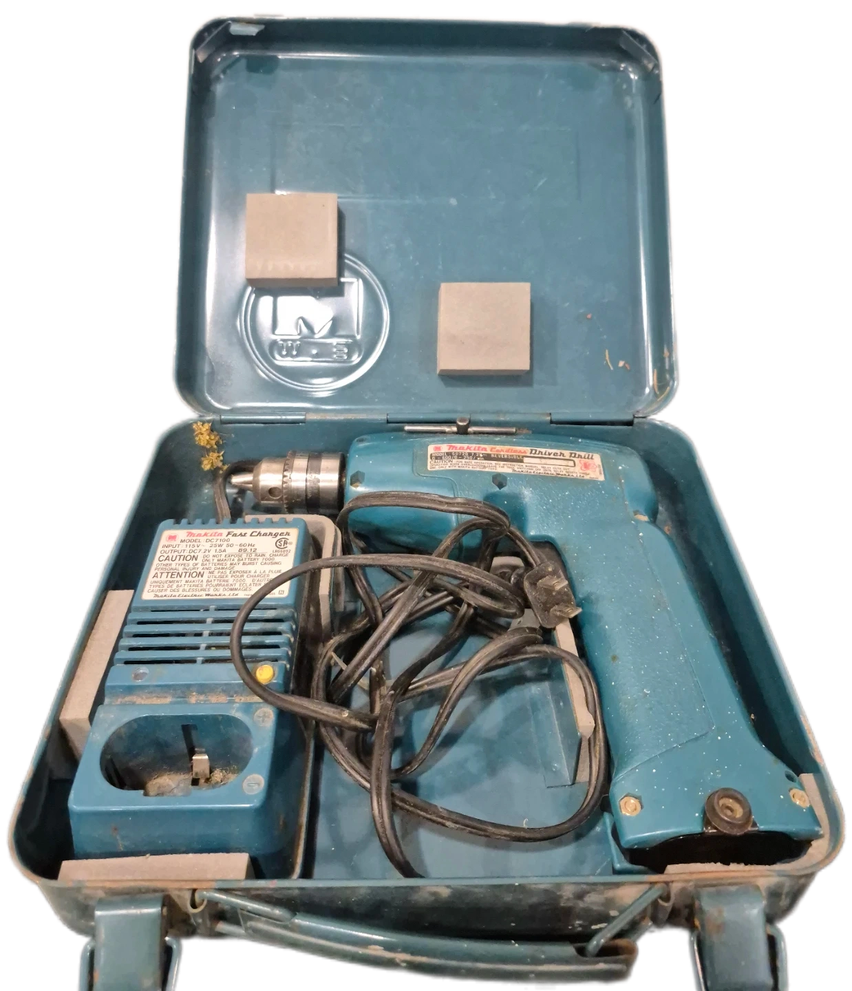 This is a Makita Cordless Driver Drill kit. It includes the drill, a charger, and comes in its original case. The drill model is 60720 and operates at 7.2V.