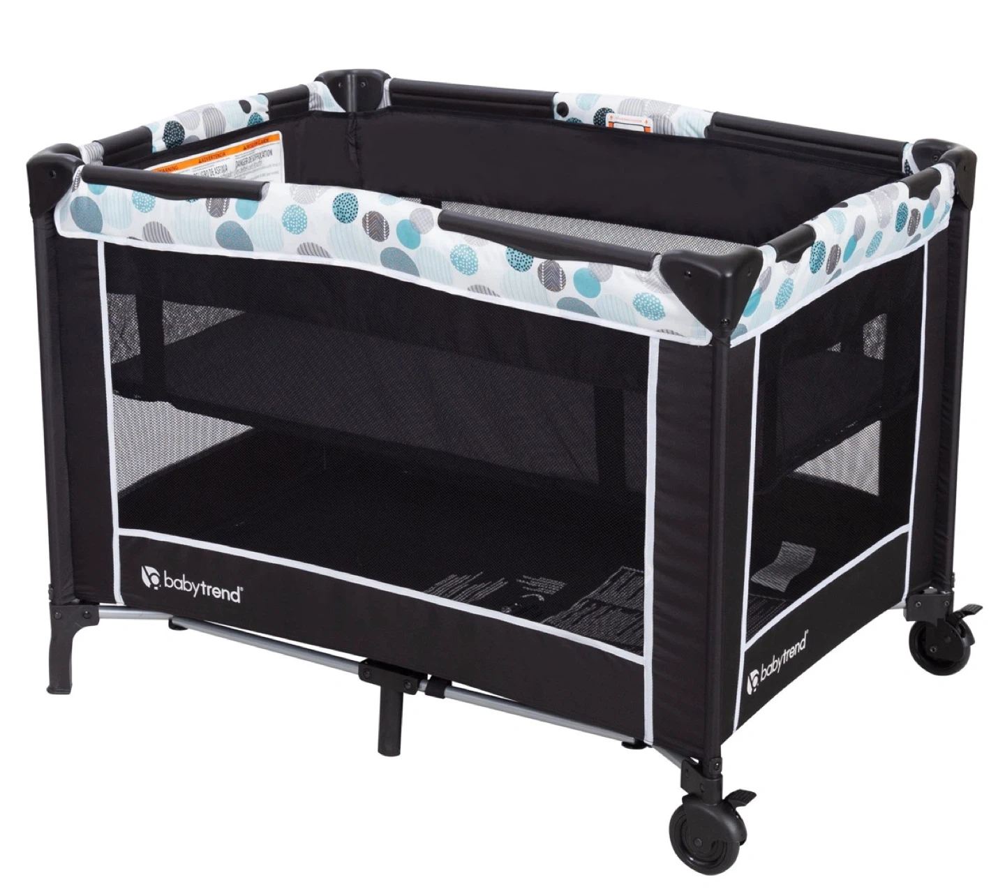 The exact name is: Baby Trend EZRest Nursery Center - Circle Pop - R Exclusive— easy to fold up and store in its carrying bag.