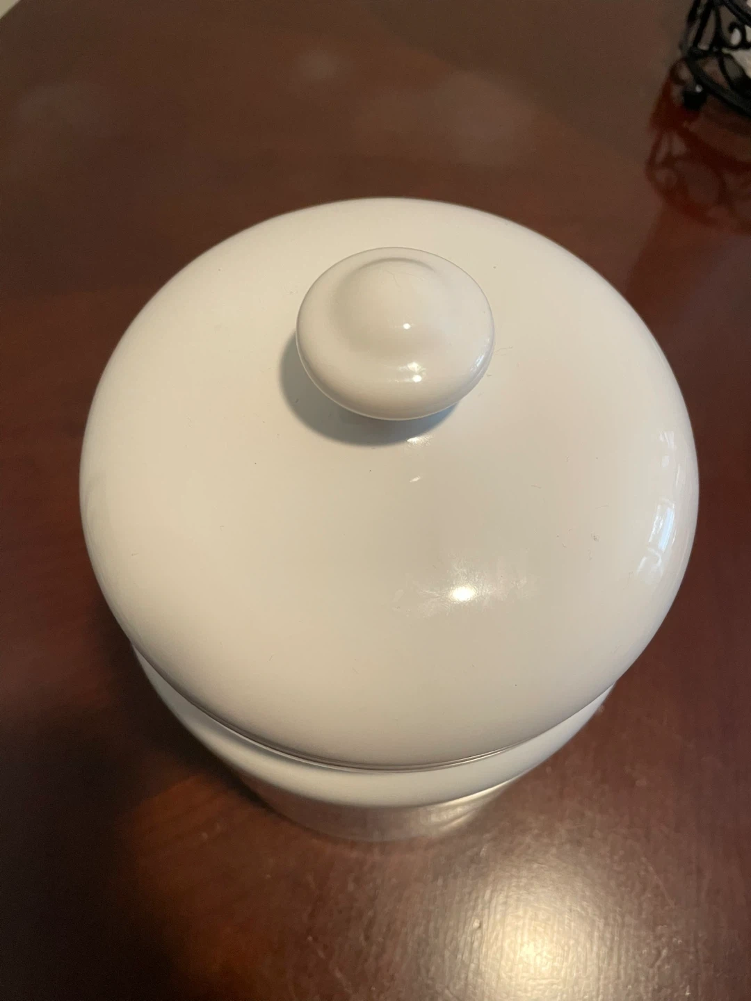 Beautiful, high-quality ceramic cookie jar featuring a timeless "Home Sweet Home" design with a decorative skeleton key.