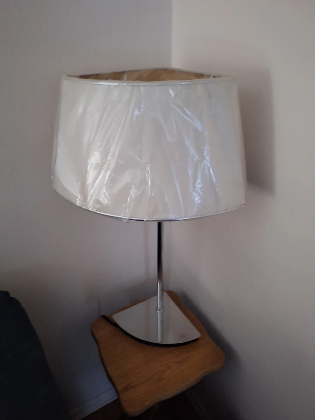 Attractive ! use for any decor pie shape lamp shade & base silver steel lamp with beige lamp shade switch on cord shade 8'' length 16"width full length of lamp 26"