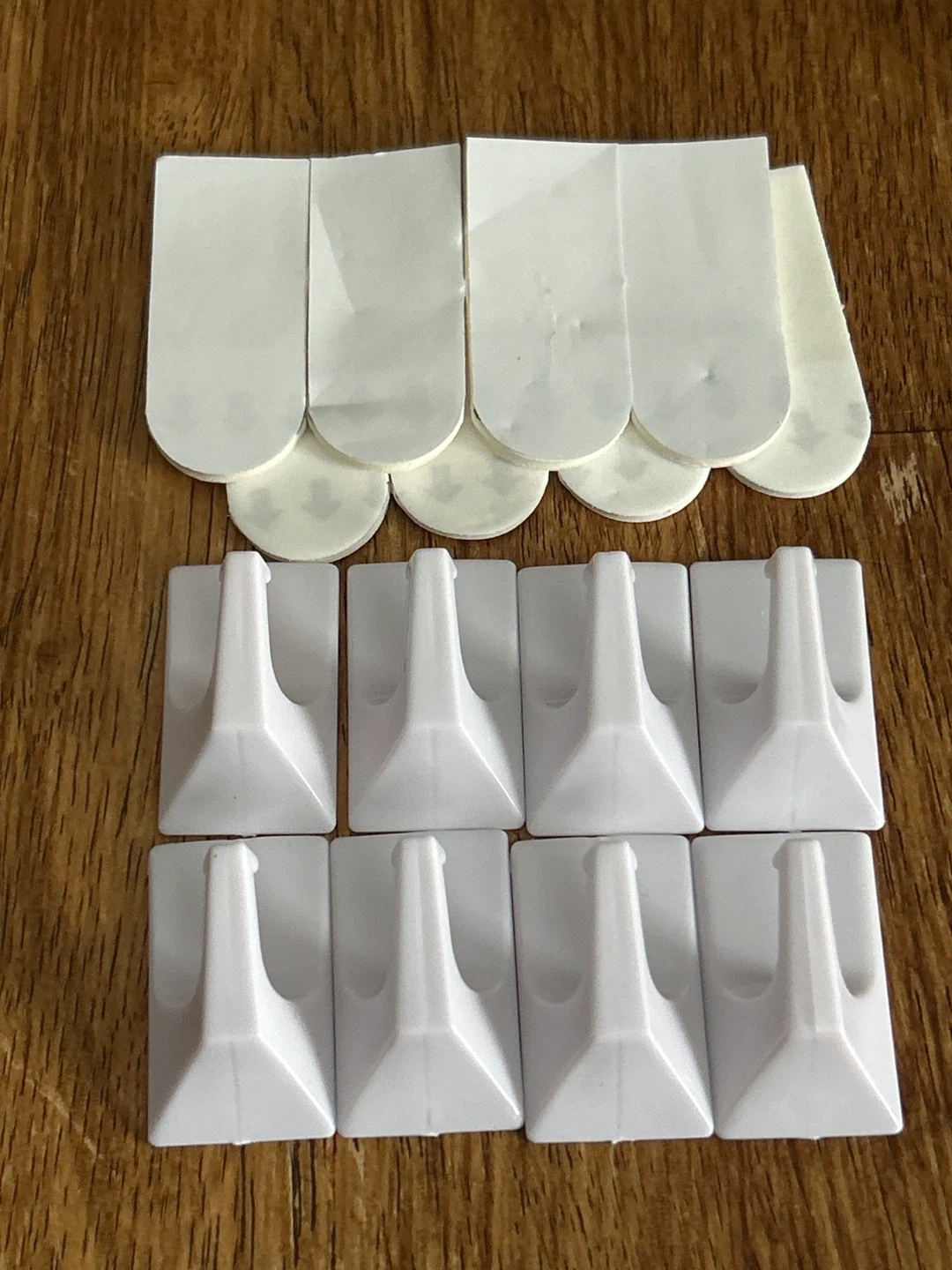 🆓🥕8 White Adhesive Hooks, Adhesive Strips
