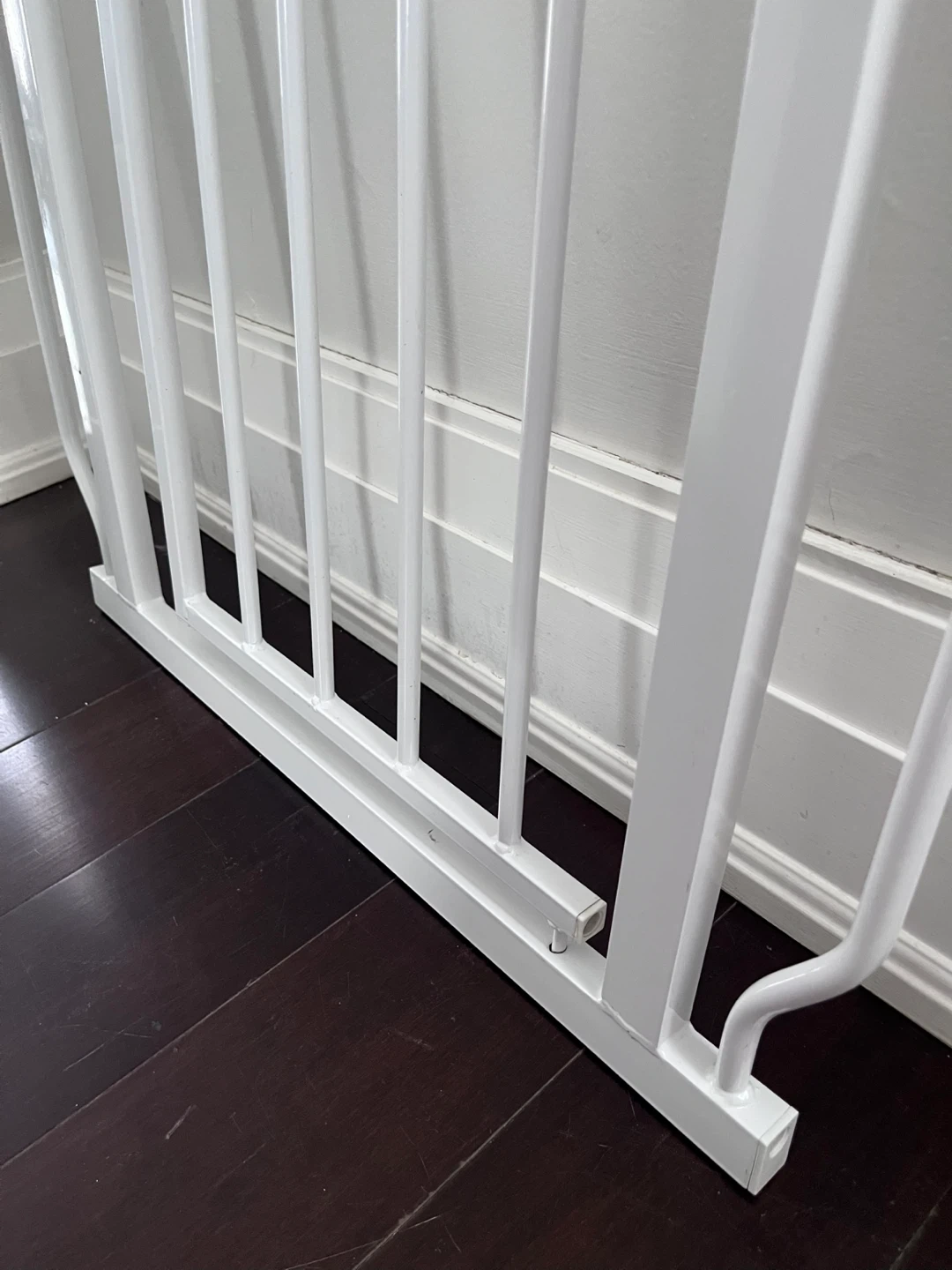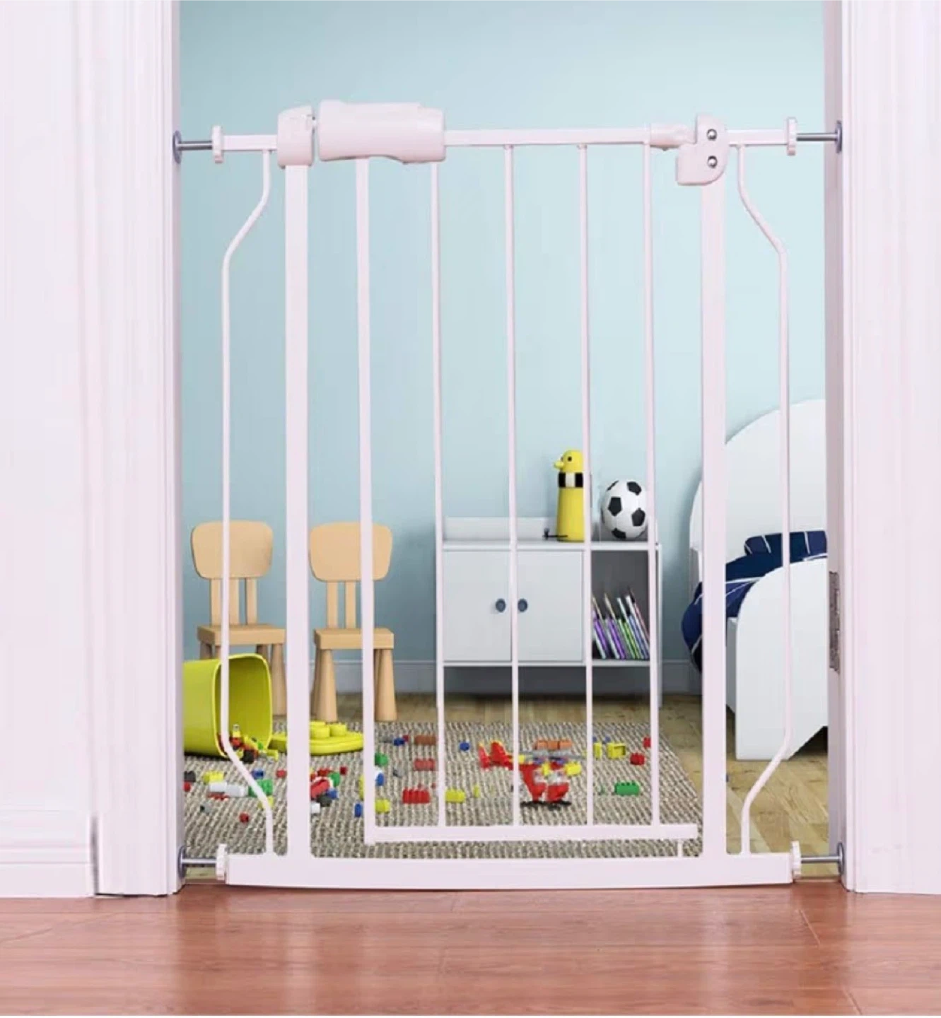 Suitable for narrow spaces - Pressure Mount for Stairs, Doorways, Banisters. Door swings both ways and automatically closes.