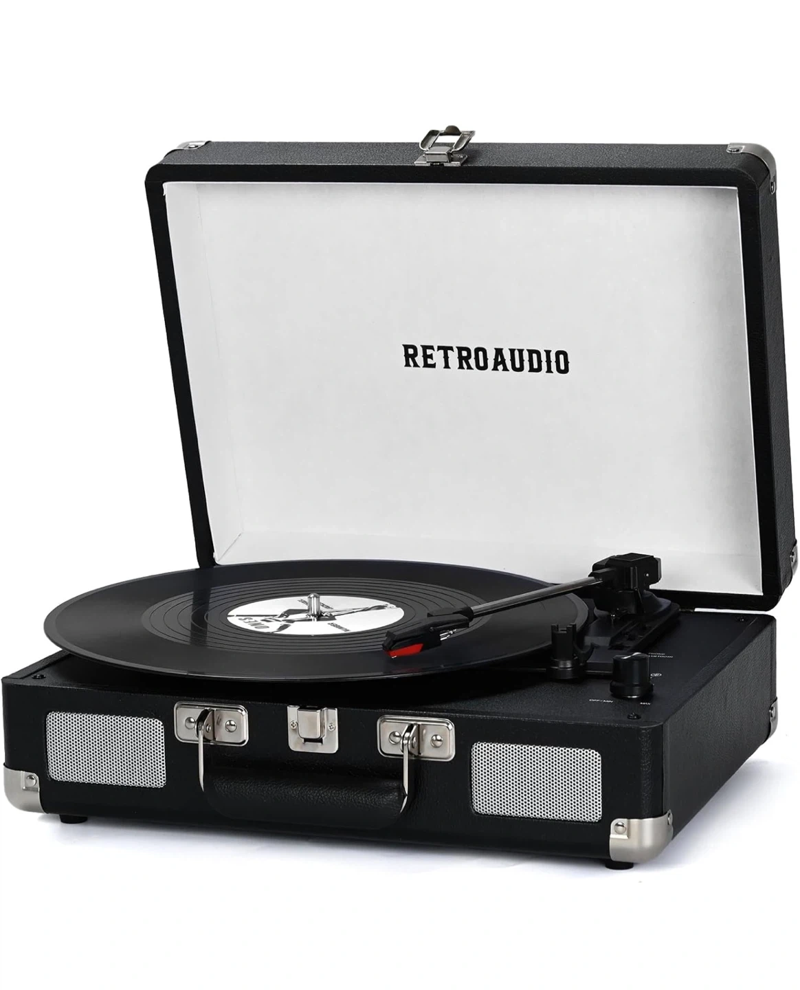 Vinyl Record Player 3-Speed Bluetooth Portable Suitcase Belt-Driven Record Player with 2 Built-in Stereo Speakers Vinyl Vintage Turntable Phonograph with RCA Line Out, AUX Out.