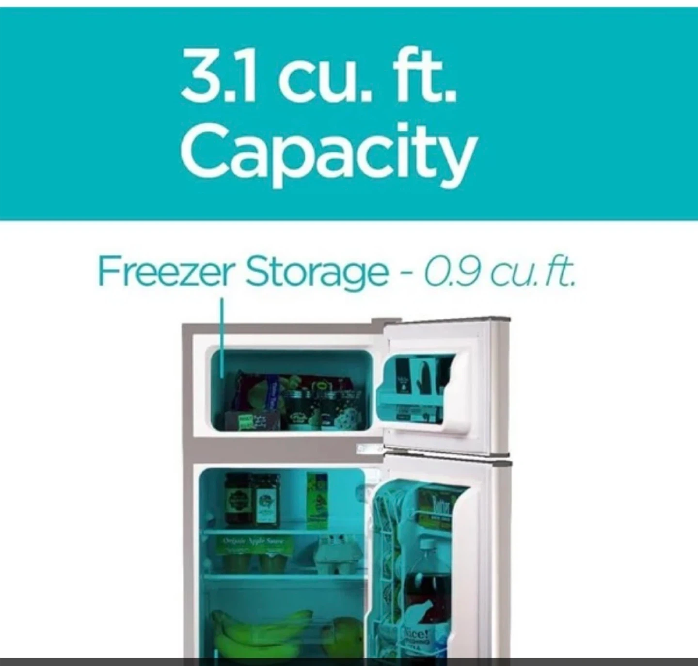 This is a new, factory-sealed BLACK+DECKER BCRDK32V mini fridge. It boasts a 3.1 cu. ft. total capacity, with 0.9 cu. ft. dedicated freezer storage. The fridge features a 2-door design and a recessed door handle for a sleek look. Pick up border of Brampton and Caledon