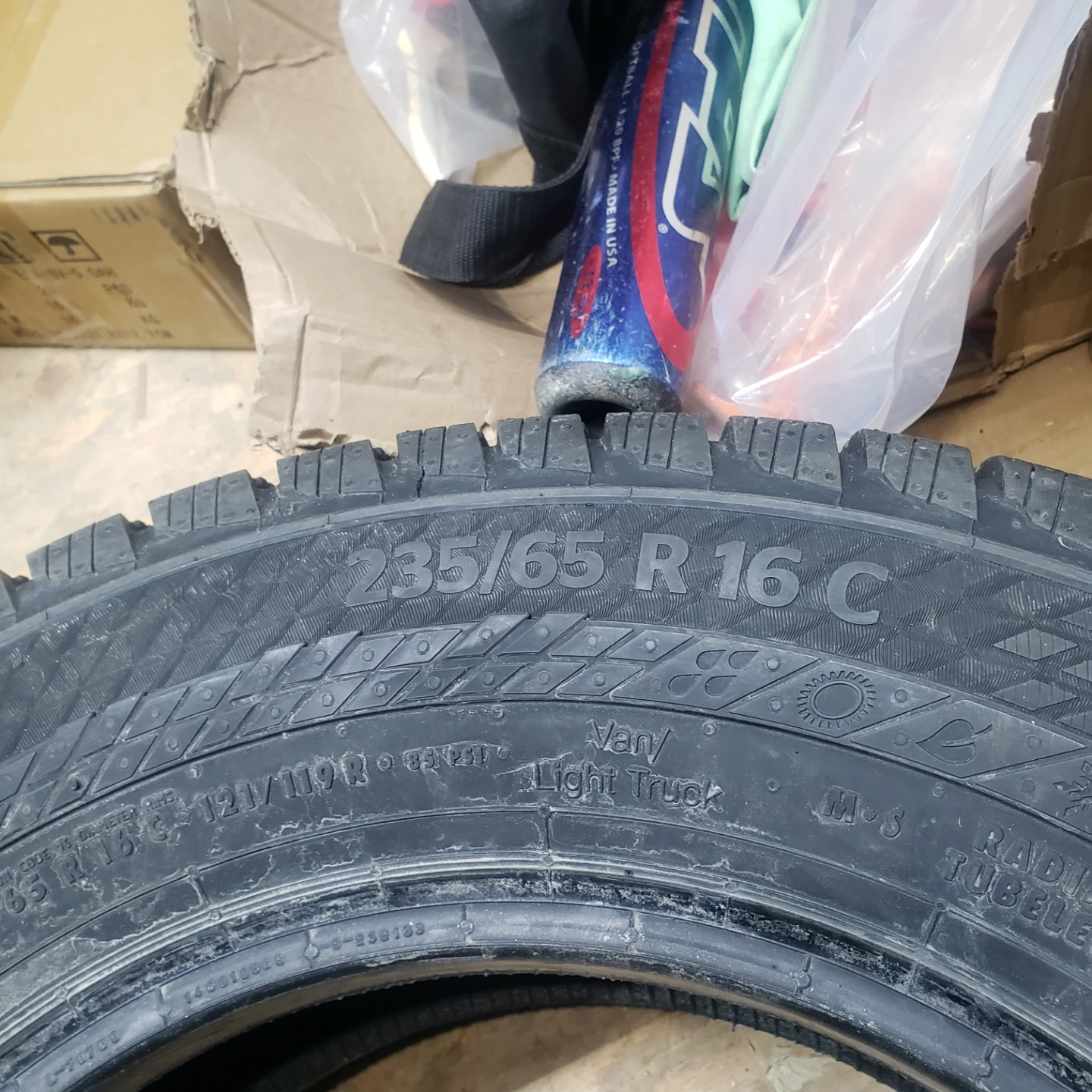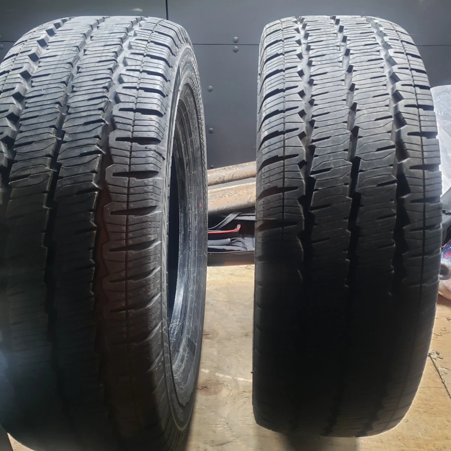 Two Continental VanContact A/S tires. Size is 235/65 R16 C. These are all-season tires suitable for light trucks. $220 for both or best offer.
