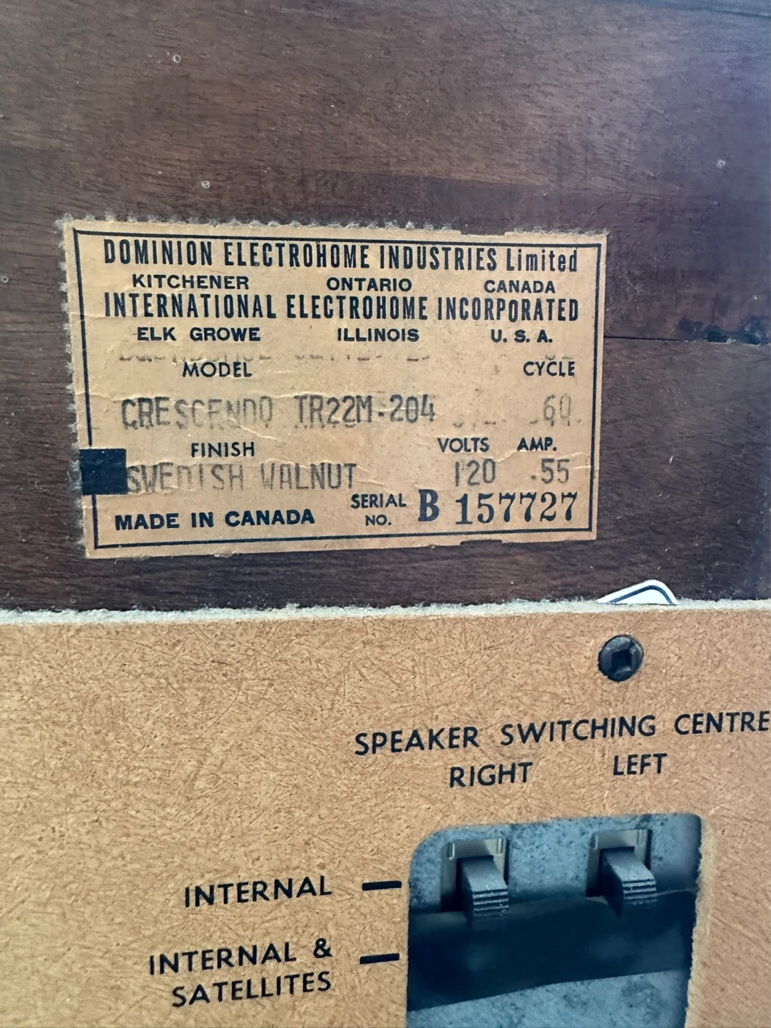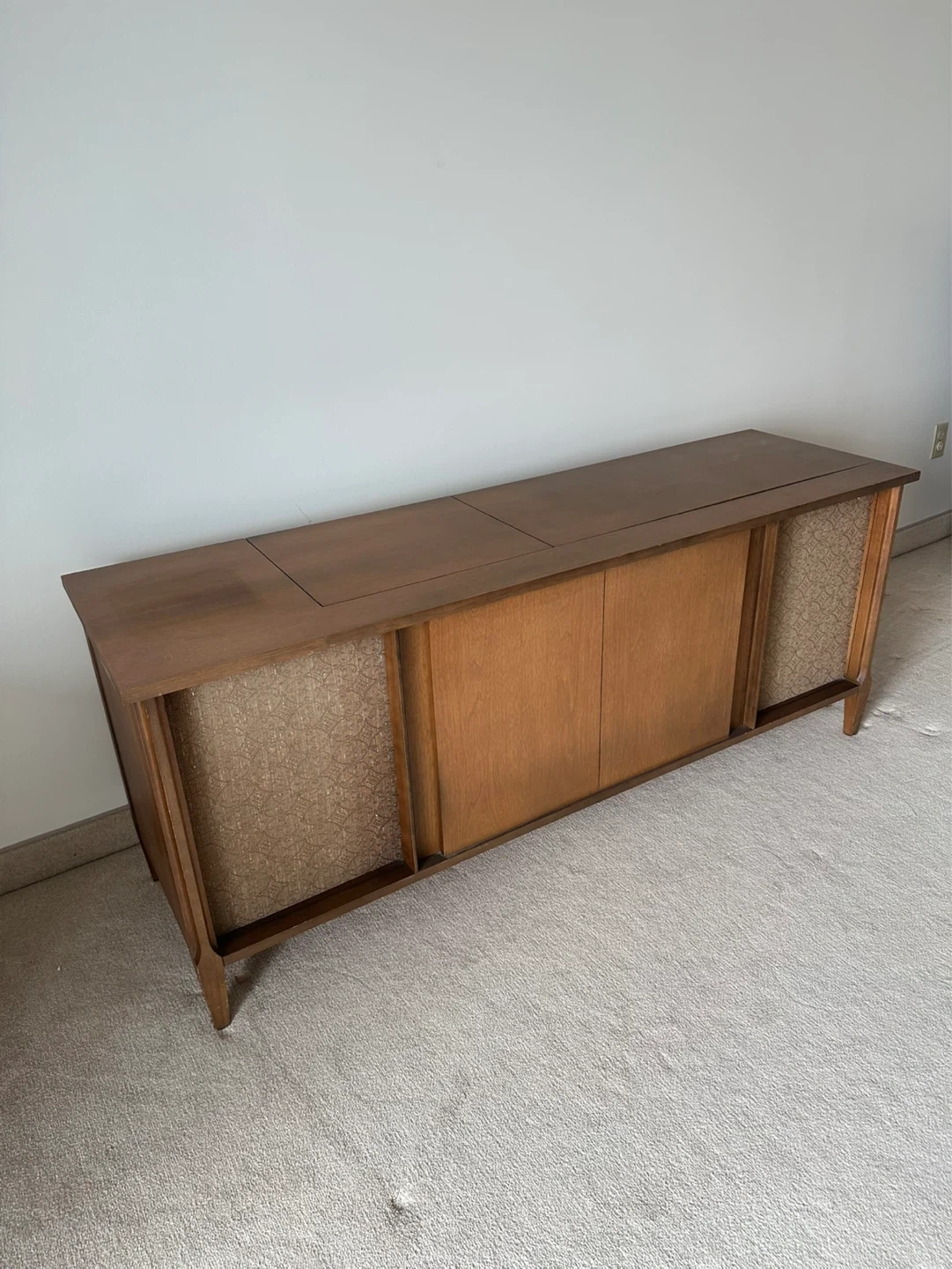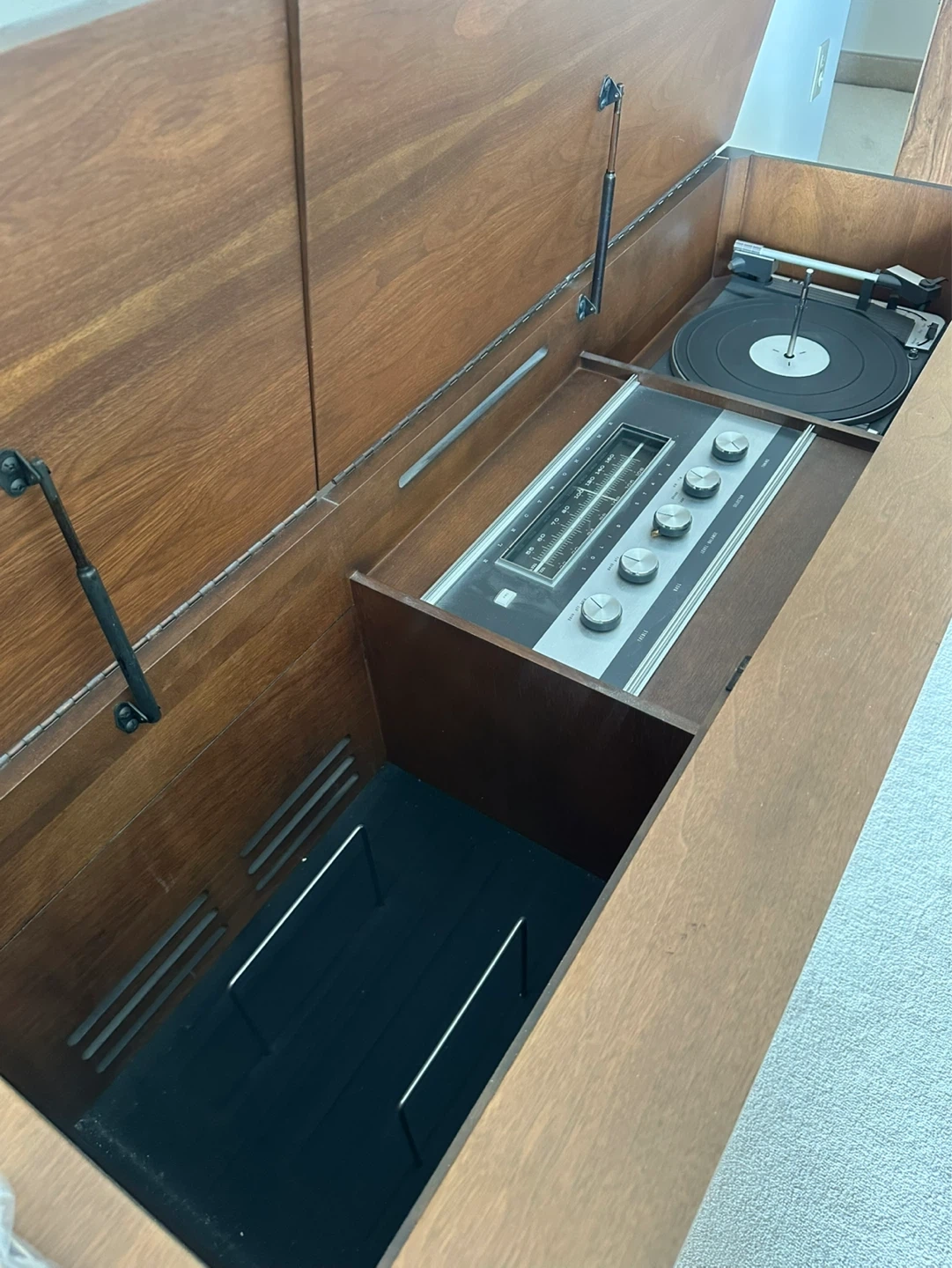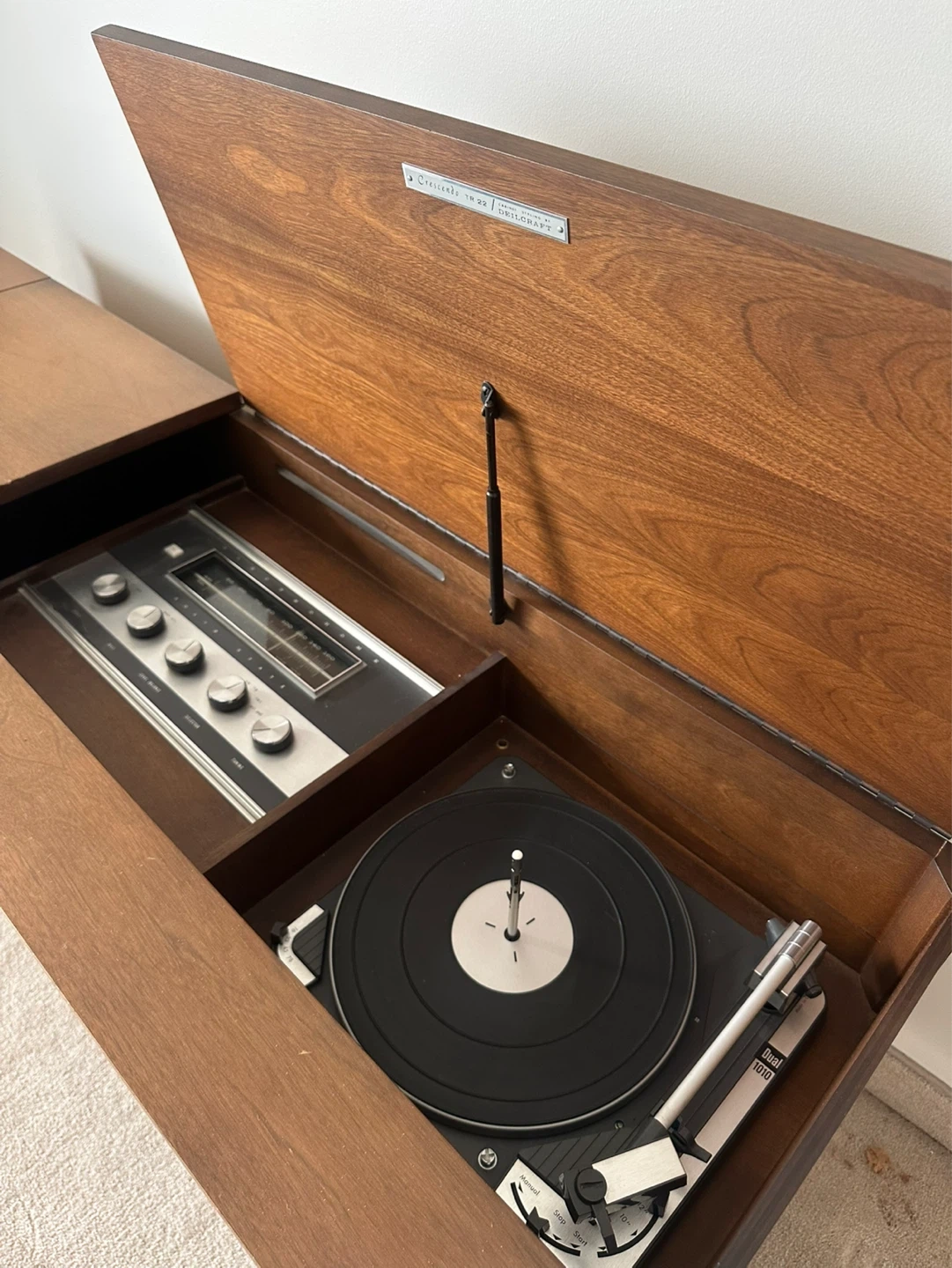Nice solid MCM piece from 1966 ready for restoration. This is a vintage swedish walnut console - the Crescendo TR22M-204 has a Dual 1010 record player and a Electrohome solid state radio inside (they need love, not currently working). Have the operating manuals.