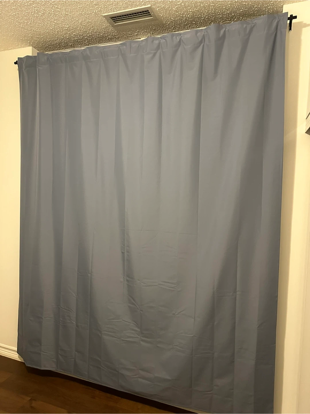 These are IKEA BENGTA curtains in a blue colour. They measure 210 cm wide and 250 cm long. These curtains are suitable for blocking light. And I'm selling 2 curtains for cheap since im moving out tmr.