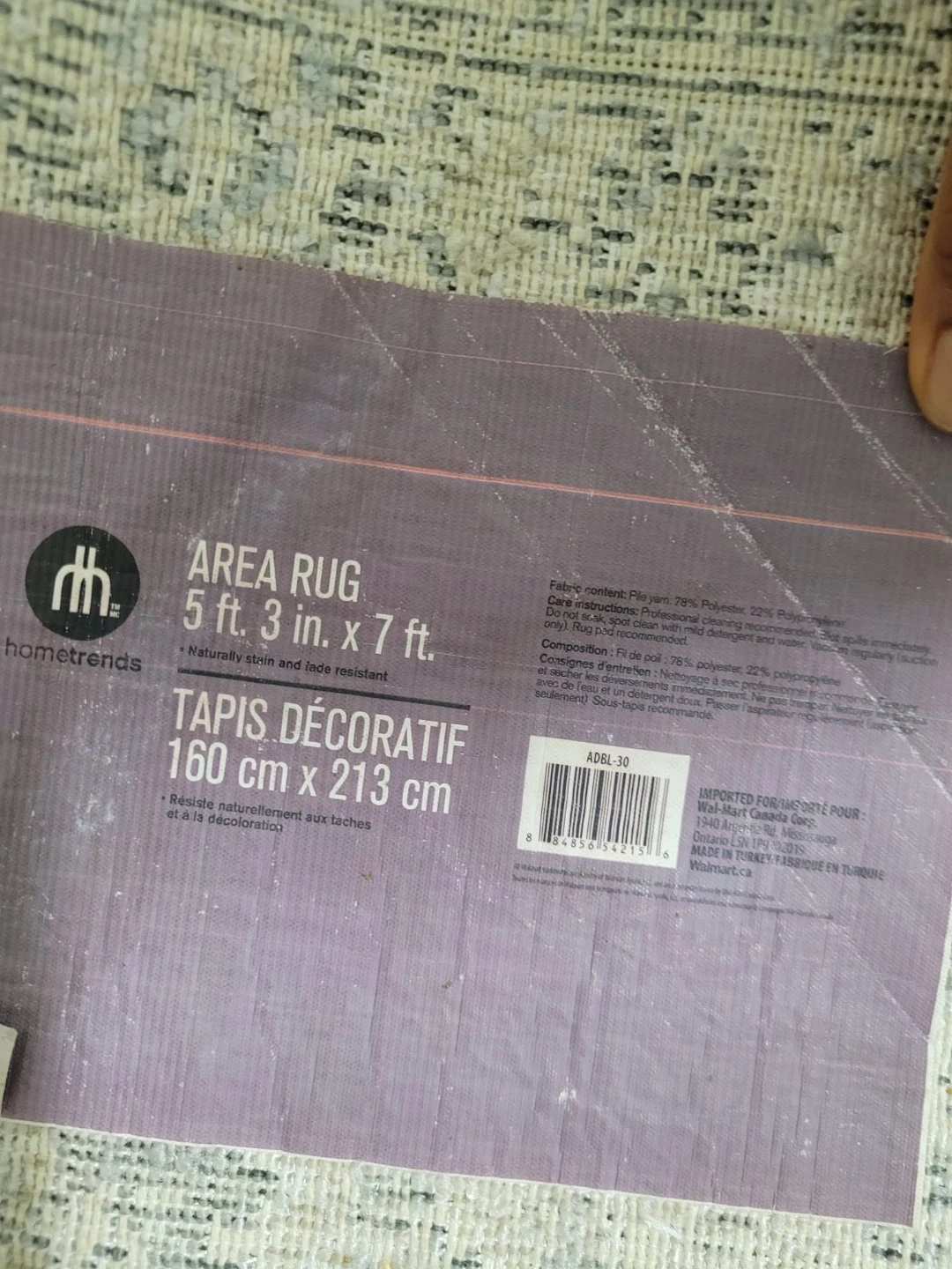 This Hometrends area rug is 5 ft. 3 in. by 7 ft. (160 cm x 213 cm). It's naturally stain and fade resistant. This rug is made from a blend of polyester and polypropylene.