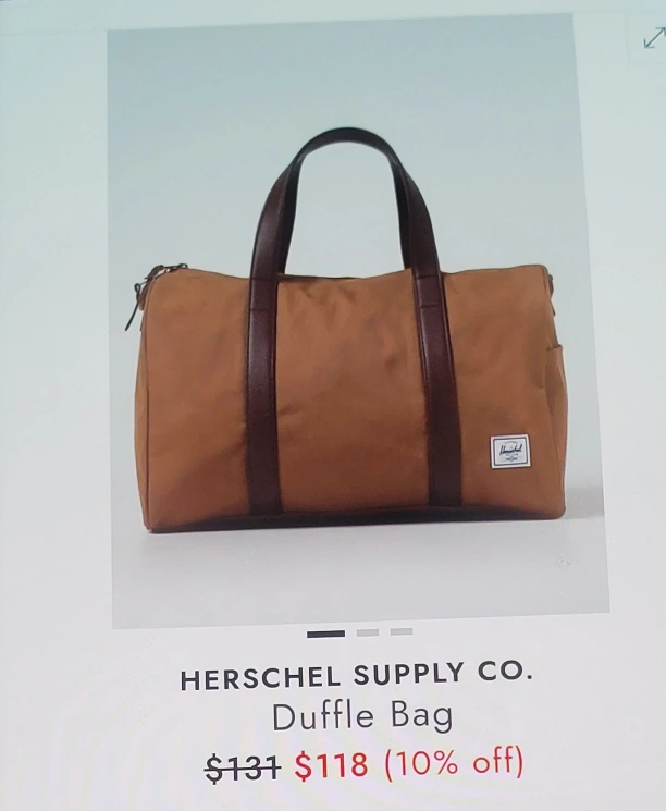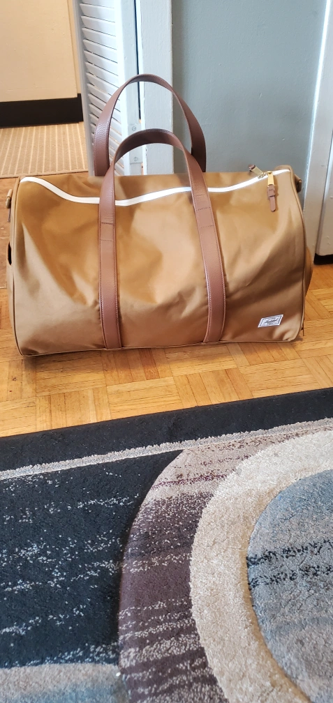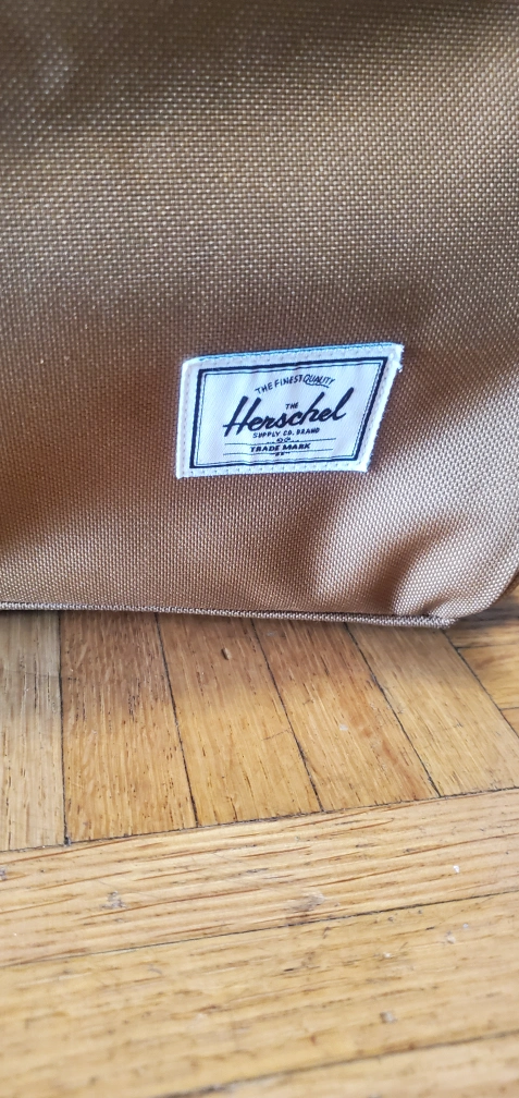 This is a Herschel duffle bag in brown. It's in great condition and ready for your next trip or gym visit! It features a spacious interior and sturdy construction.