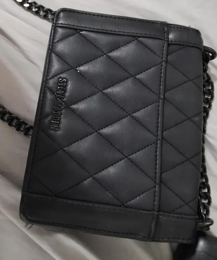 🥕Steve Madden black quilted crossbody bag. It's made of faux leather with a silver chain strap. This bag is compact and stylish for everyday use!
