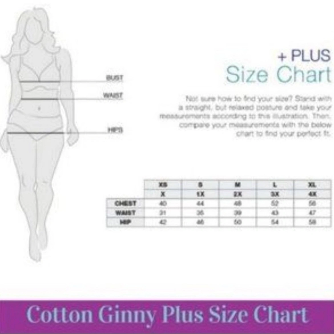 Size: Plus XL in Cotton Ginny size which is a 4X regular size (see size chart)